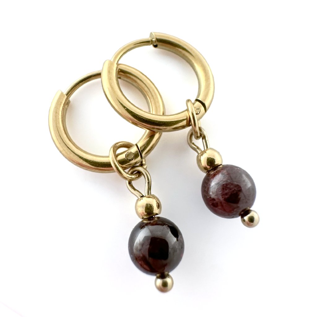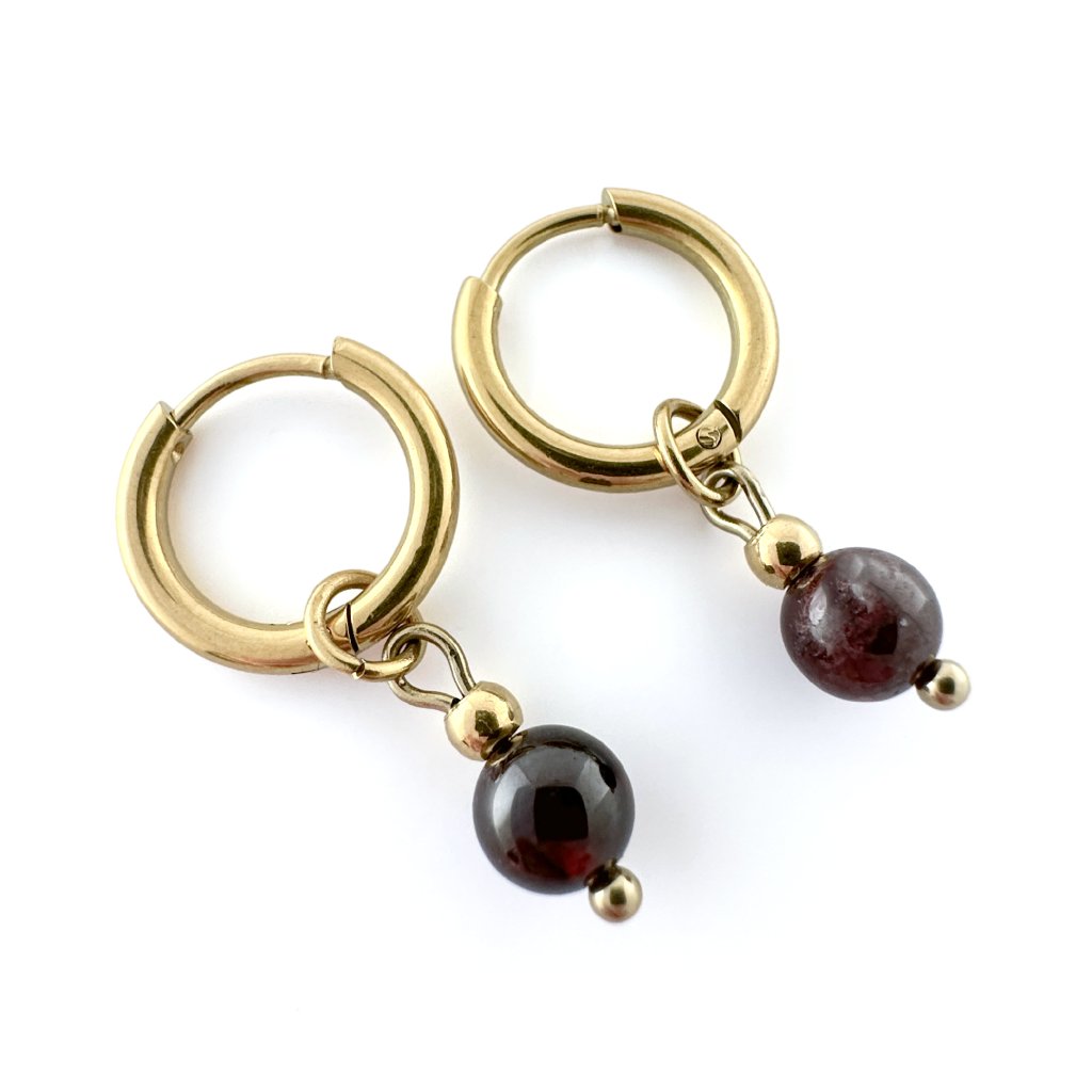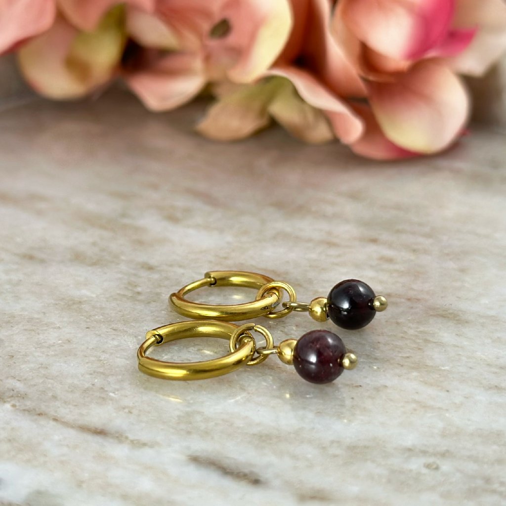 Kruhové náušnice s granátem. Sytě červený granát symbolizuje sílu, odvahu a vnitřní světlo, které vás povzbuzuje zazářit v každém okamžiku. Tyto ručně vyrobené červené náušnice nejsou jen stylovým doplňkem – jsou poselstvím energie, sebevědomí a elegance.