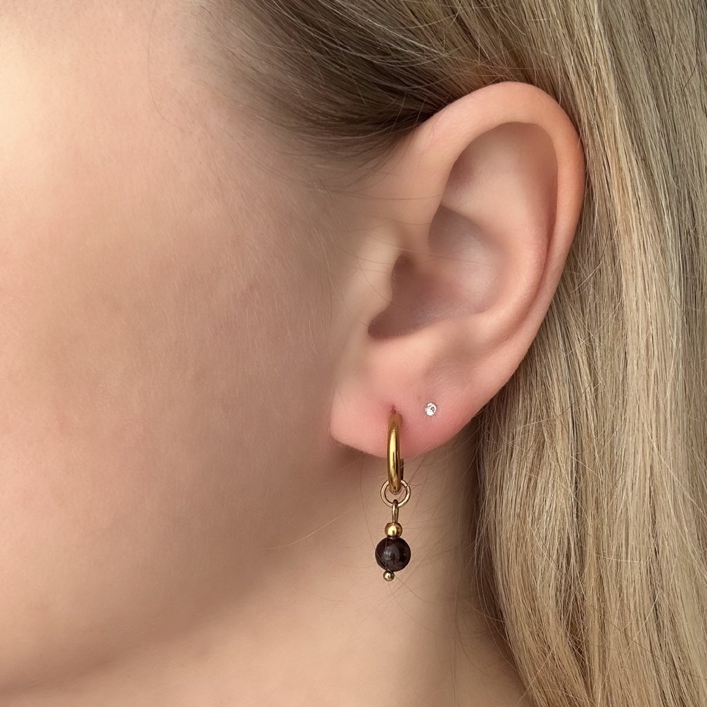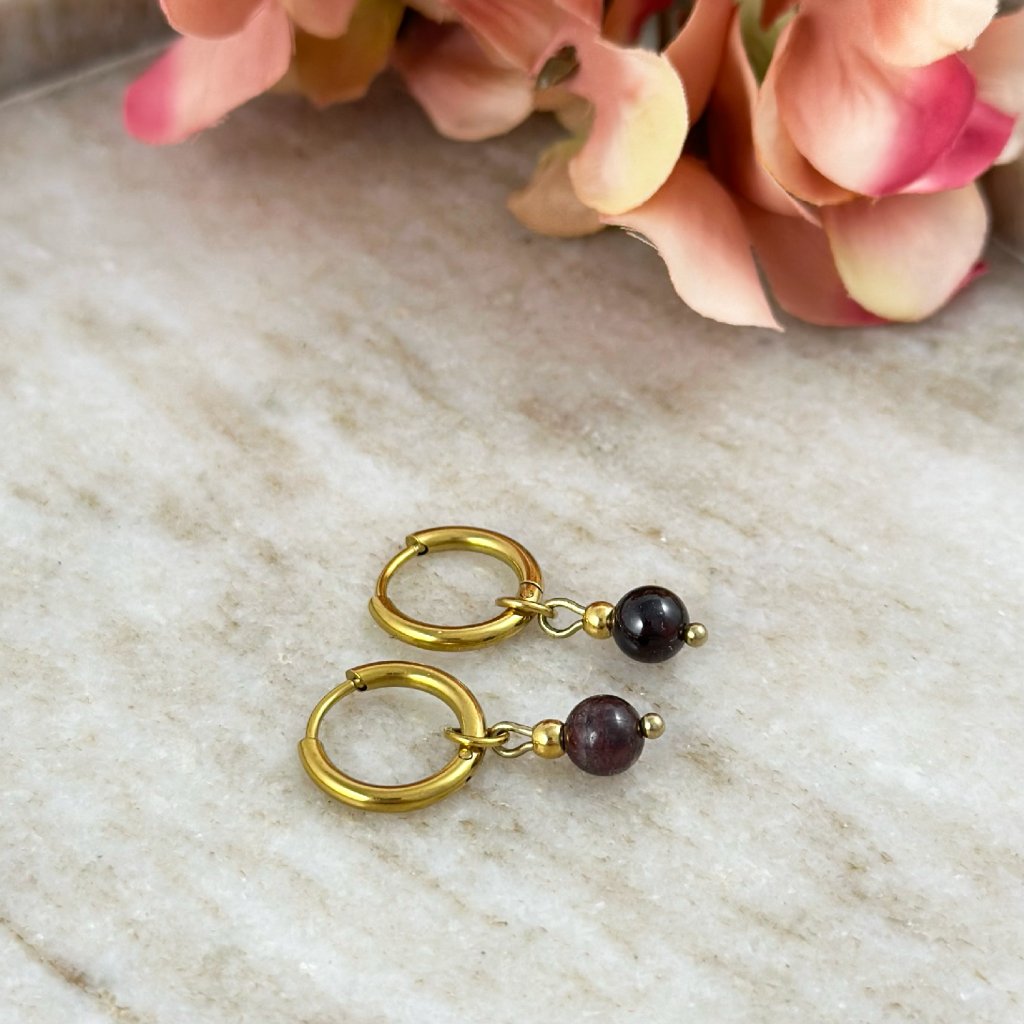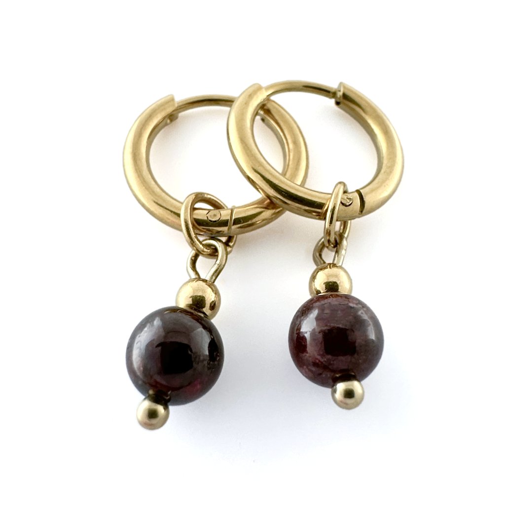 Kruhové náušnice s granátem. Sytě červený granát symbolizuje sílu, odvahu a vnitřní světlo, které vás povzbuzuje zazářit v každém okamžiku. Tyto ručně vyrobené červené náušnice nejsou jen stylovým doplňkem – jsou poselstvím energie, sebevědomí a elegance.