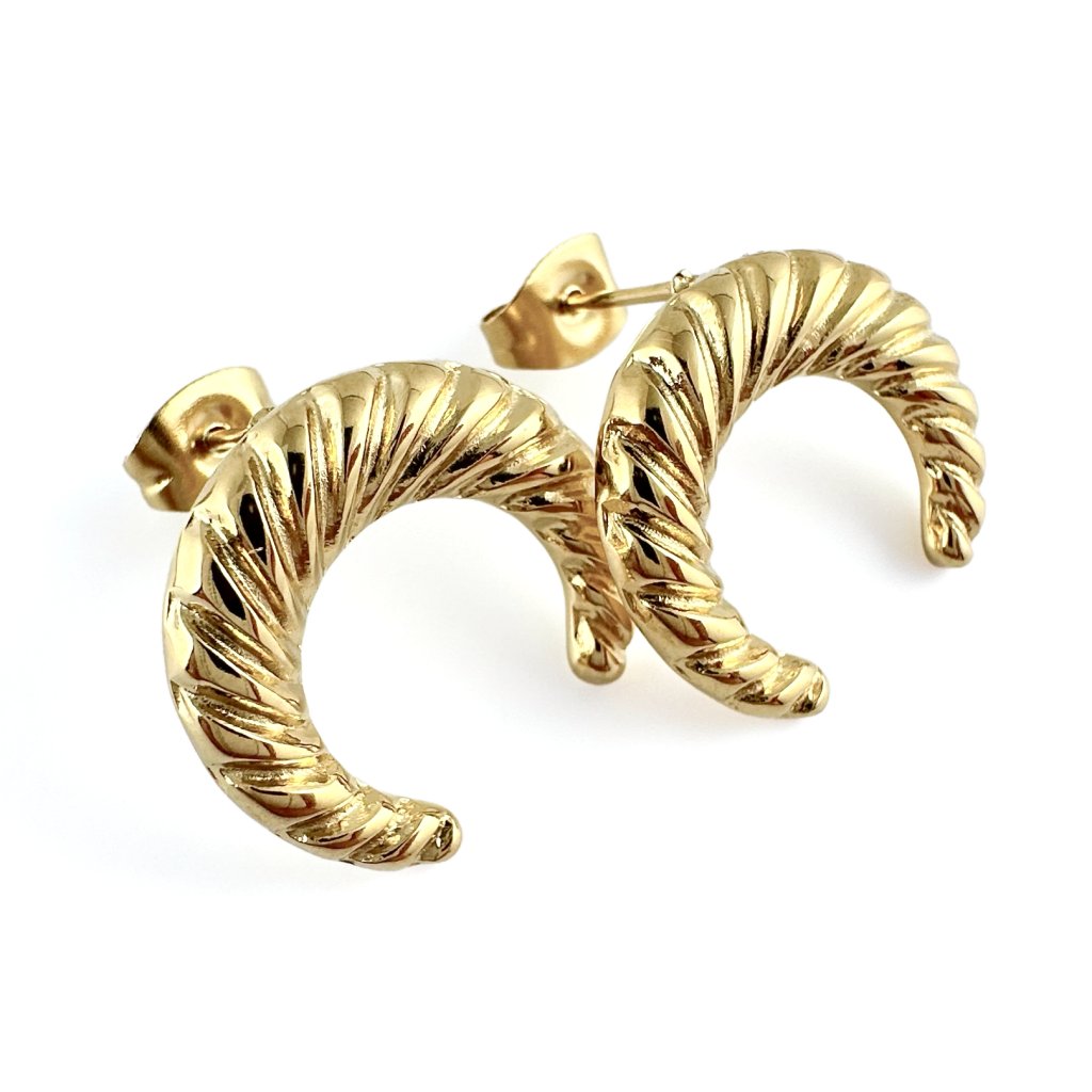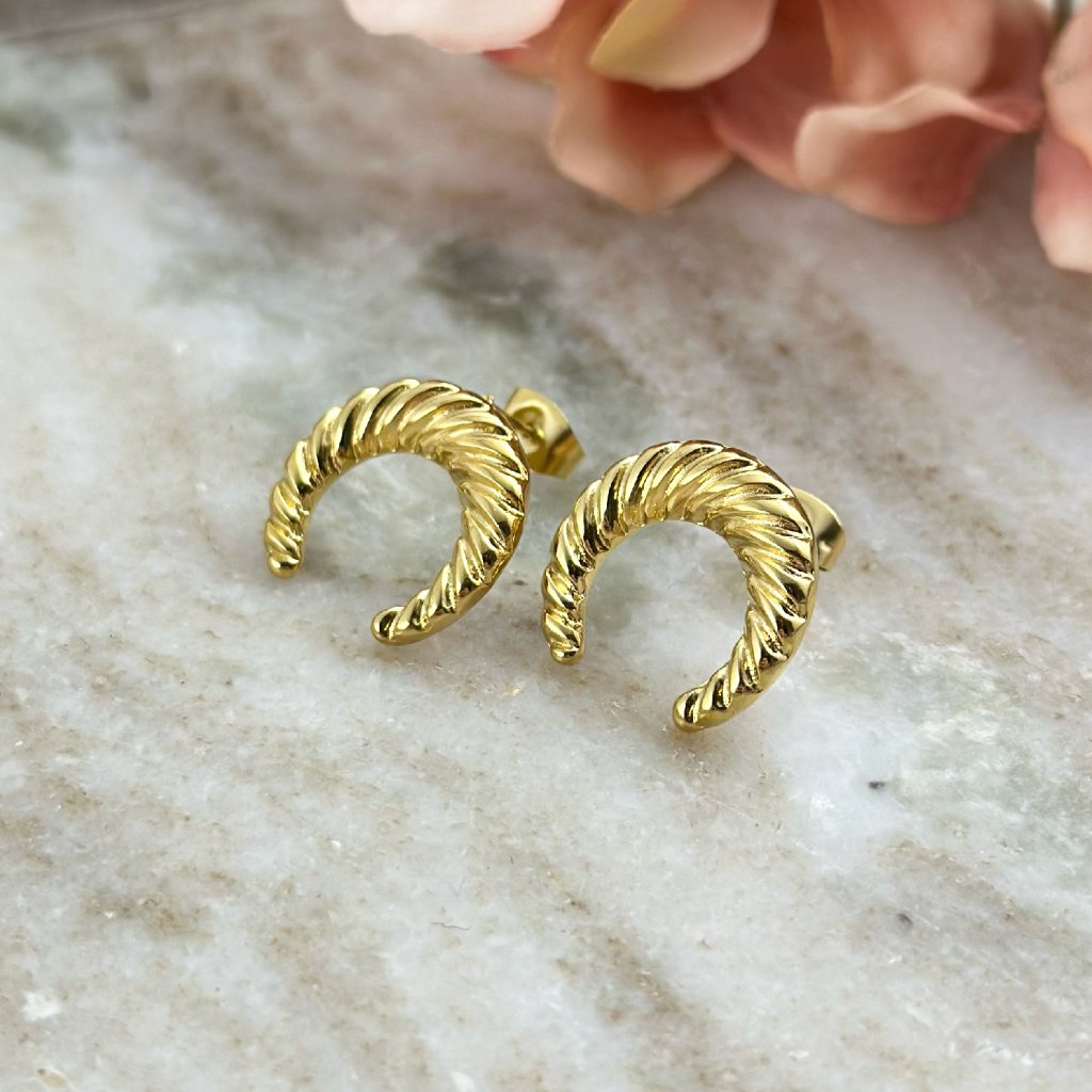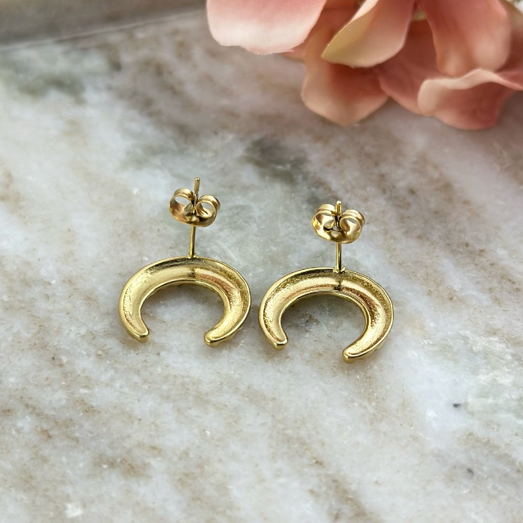 Náušnice půlměsíc z chirurgické oceli. Stylové náušnice ve tvaru půlměsíce z kvalitní chirurgické oceli zaujmou svou čistou linií a jemnou symbolikou. Půlměsíc jako znak ženskosti, intuice a rovnováhy dodává šperku hlubší význam, zatímco odolný a hypoalergenní materiál zajišťuje pohodlné nošení každý den.
