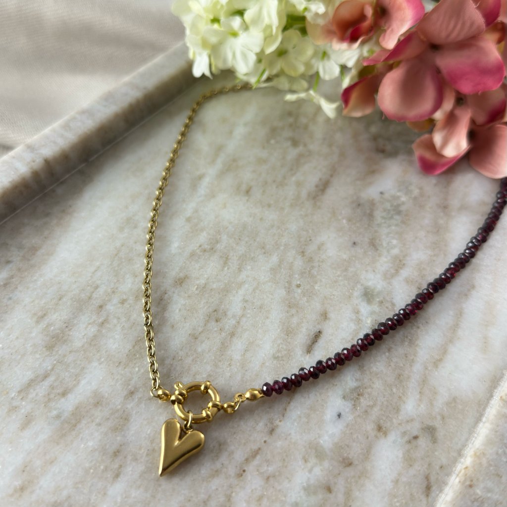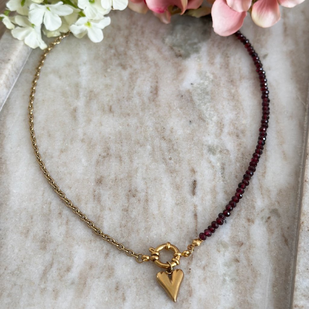 Granátový náhrdelník se srdcem
