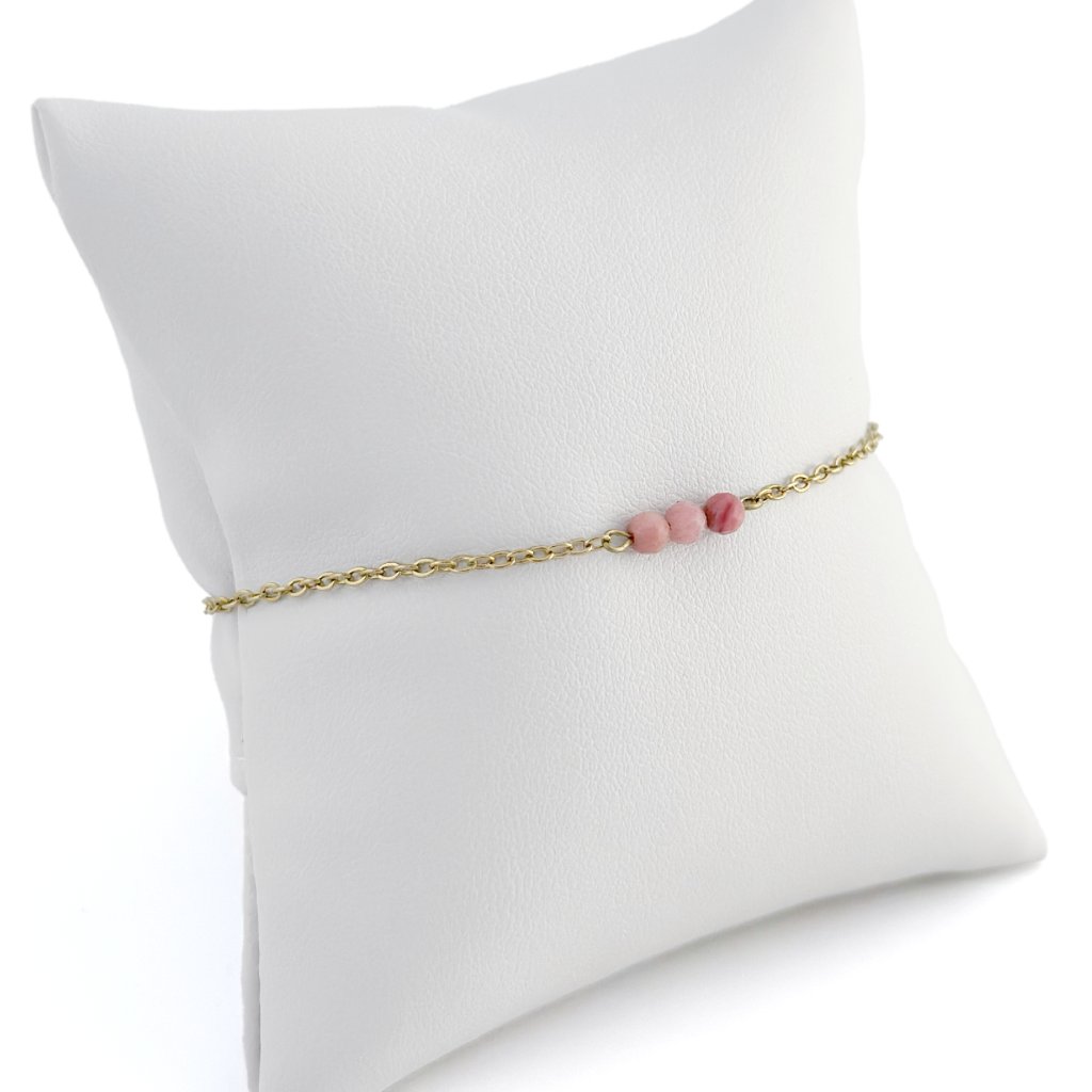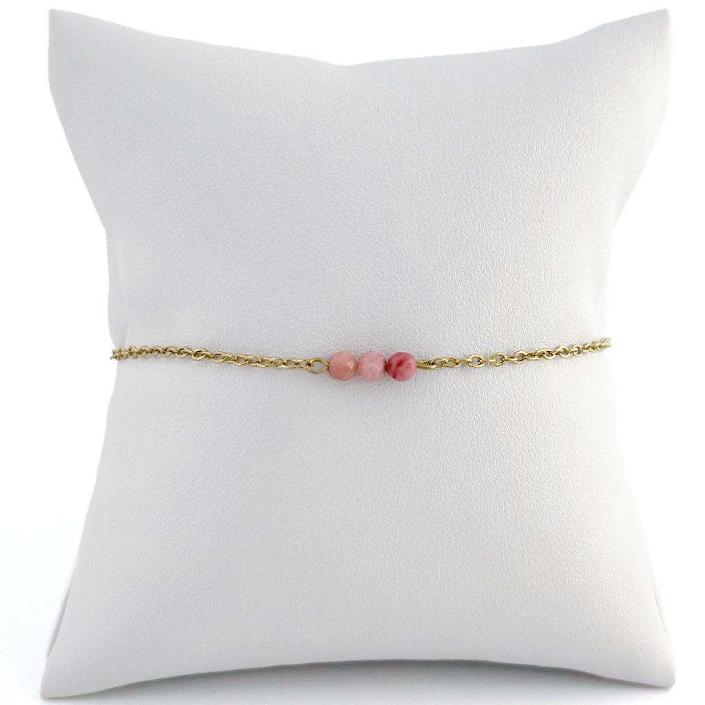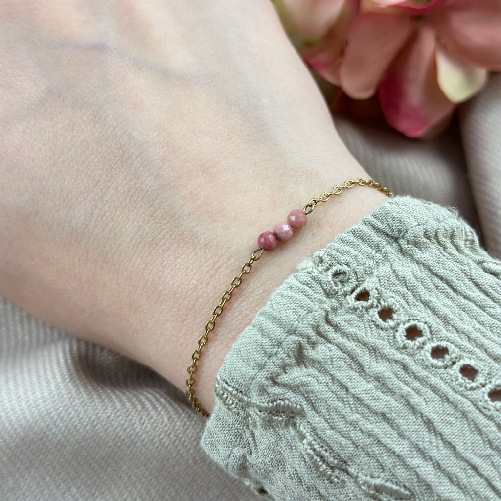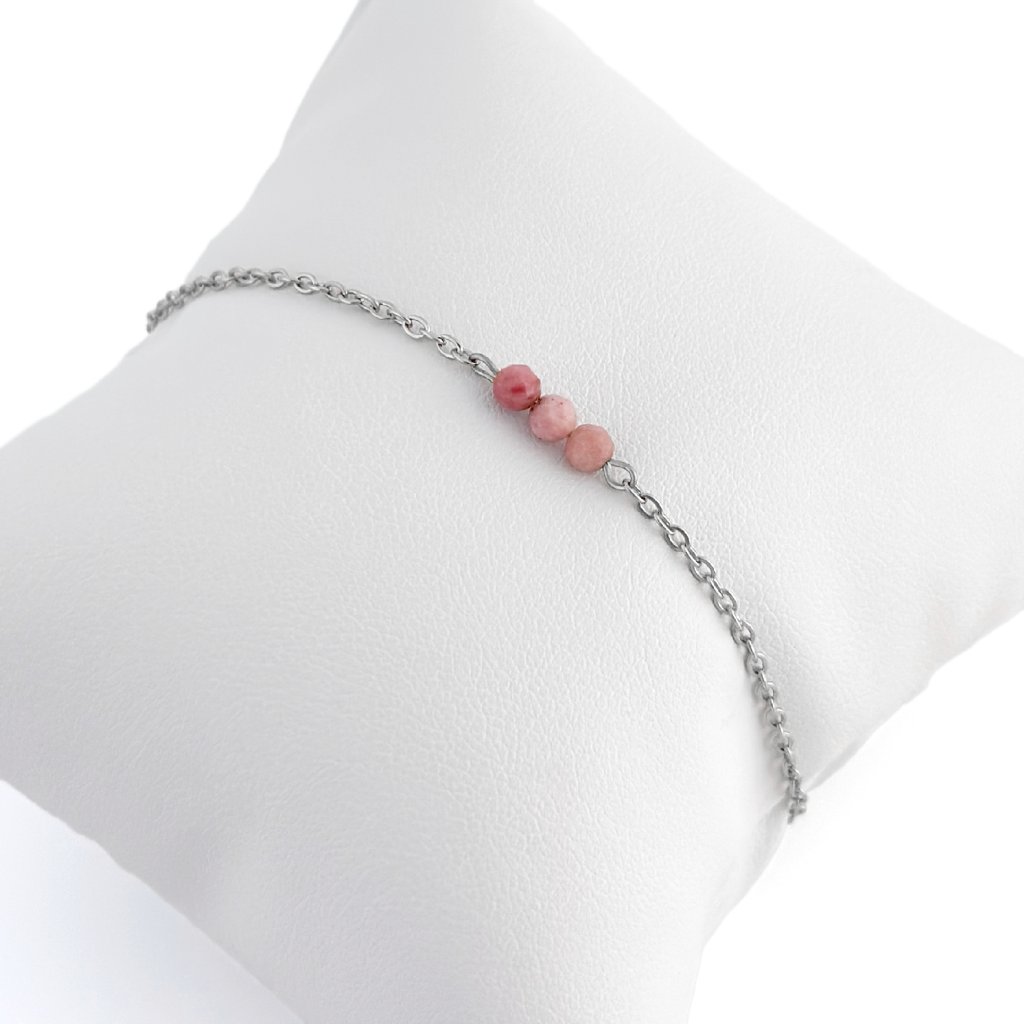 Minimalistický náramek s rodonitem. Jemný řetízek z chirurgické oceli zajišťuje odolnost a dlouhou životnost náramku. Rodonit je kamenem lásky, empatie a emoční rovnováhy – pomáhá uzdravovat srdce, podporuje odpuštění a vnitřní klid. Díky svému něžnému a nadčasovému designu je náramek ideální pro každodenní nošení i výjimečné příležitosti. Krásně ladí s dalšími šperky. Dostupný ve zlatém i stříbrném provedení. Délku náramku Vám ráda upravím na míru.