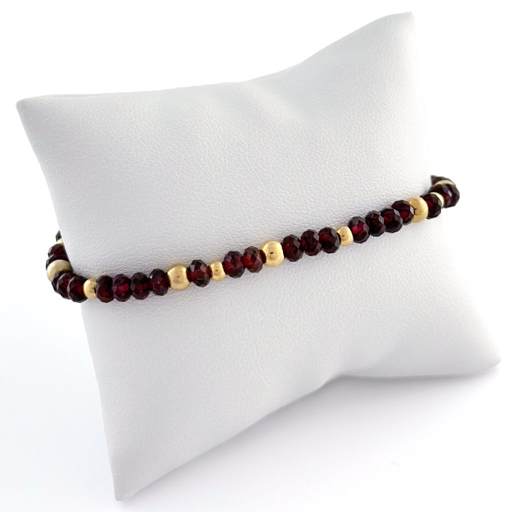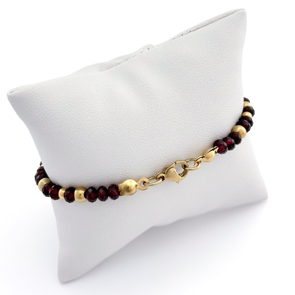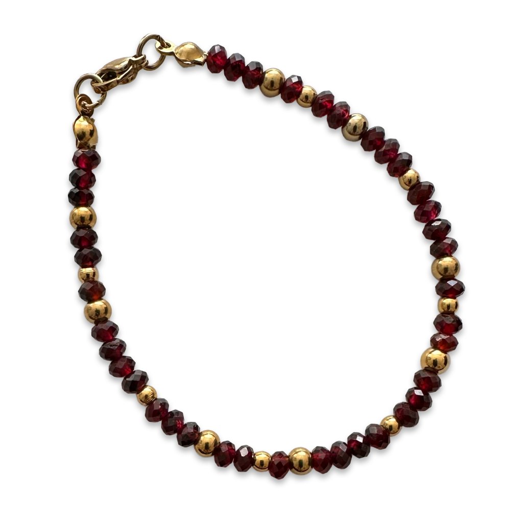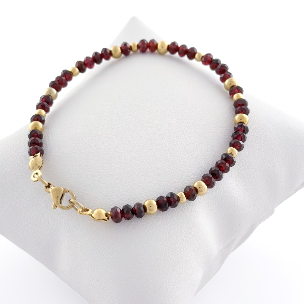 Náramek z přírodního granátu. Granát podporuje vitalitu a odhodlání. Také dodává životní energii a vytrvalost. Ostatní komponenty náramku jsou vyrobeny z chirurgické oceli, která je hypoalergenní. Délku náramku s granátem Vám dle Vašeho přání upravím na míru.