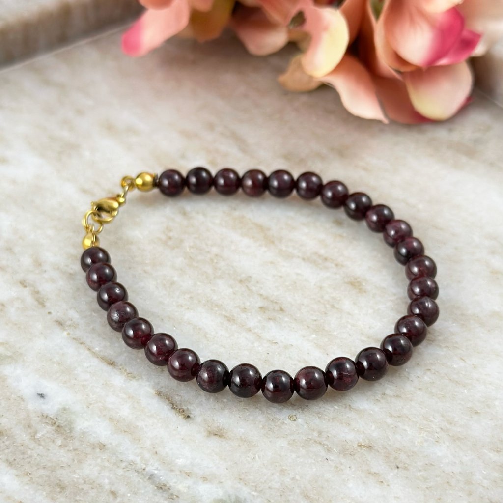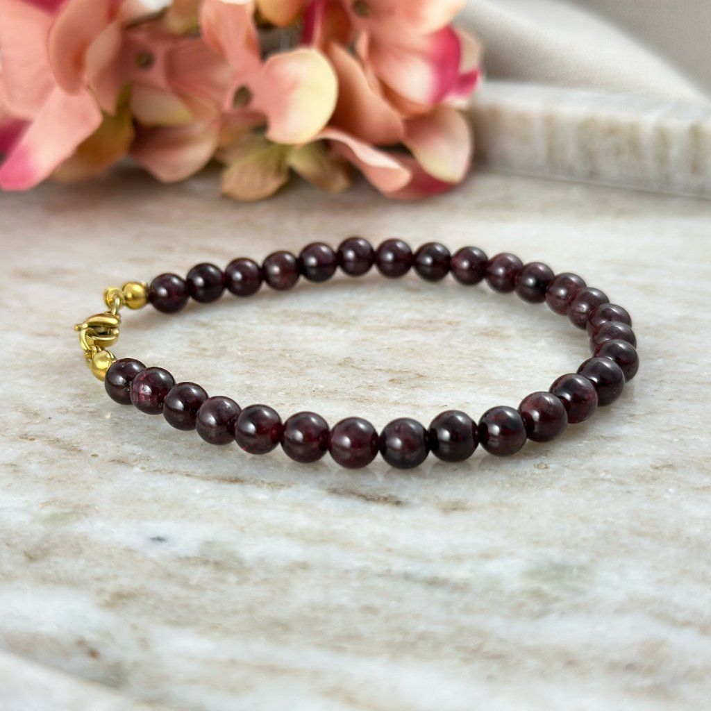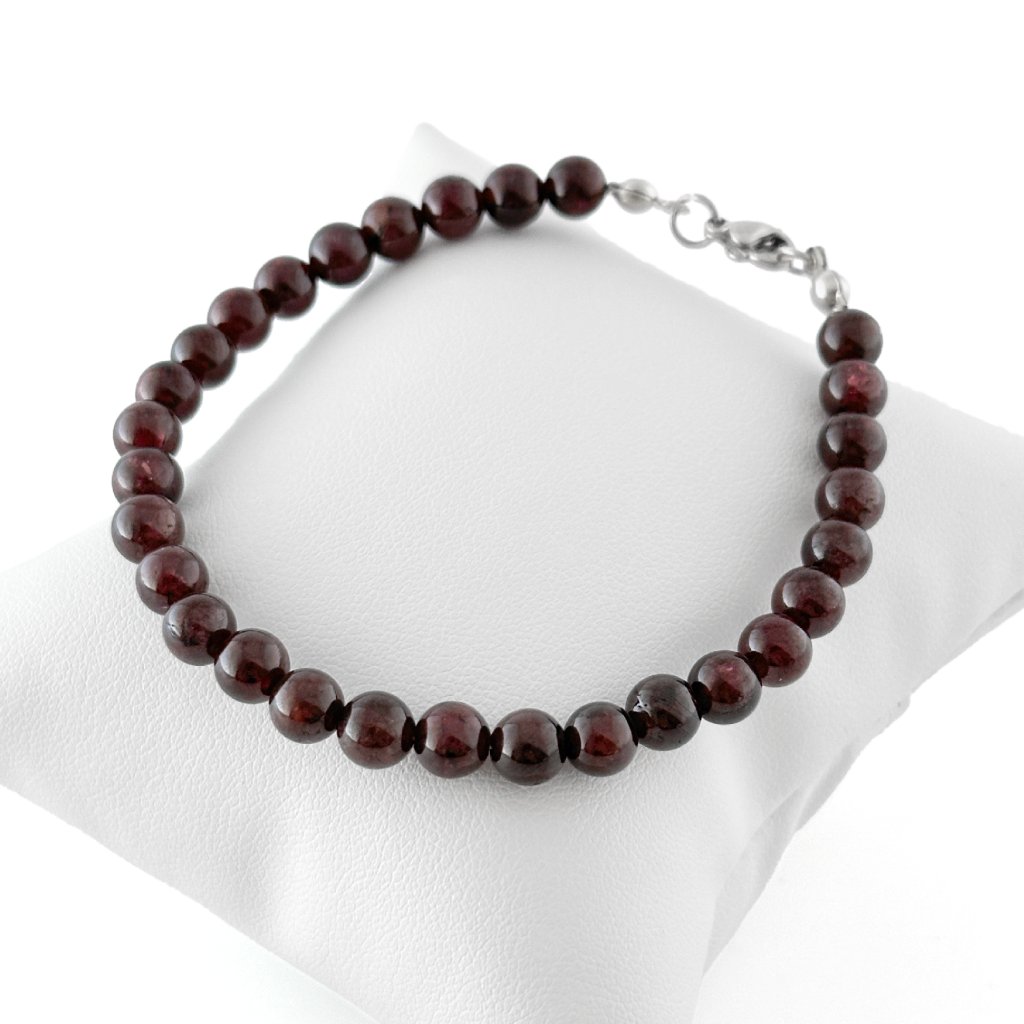 Ručně vyrobený náramek s granátem Aurora. Granát symbolizuje sílu a odvahu čelit světu, zatímco jeho hluboký lesk vás povzbuzuje, abyste zářili v každém okamžiku. Tento ručně vyrobený náramek není jen šperk – je to kousek, který nese příběh, energii a inspiraci pro ženy, které touží po výjimečnosti.