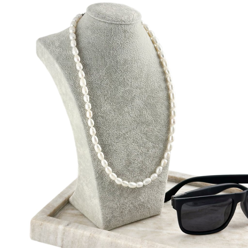 Pánský perlový náhrdelník. Elegantní, ale nepřehlédnutelný. Stefano je pánský náhrdelník z pravých říčních perel, který ztělesňuje jednoduchost, styl a nadčasovost. Ručně vyrobený s důrazem na detail, přináší dokonalou rovnováhu mezi klasickou elegancí a moderním přístupem k pánským šperkům.
