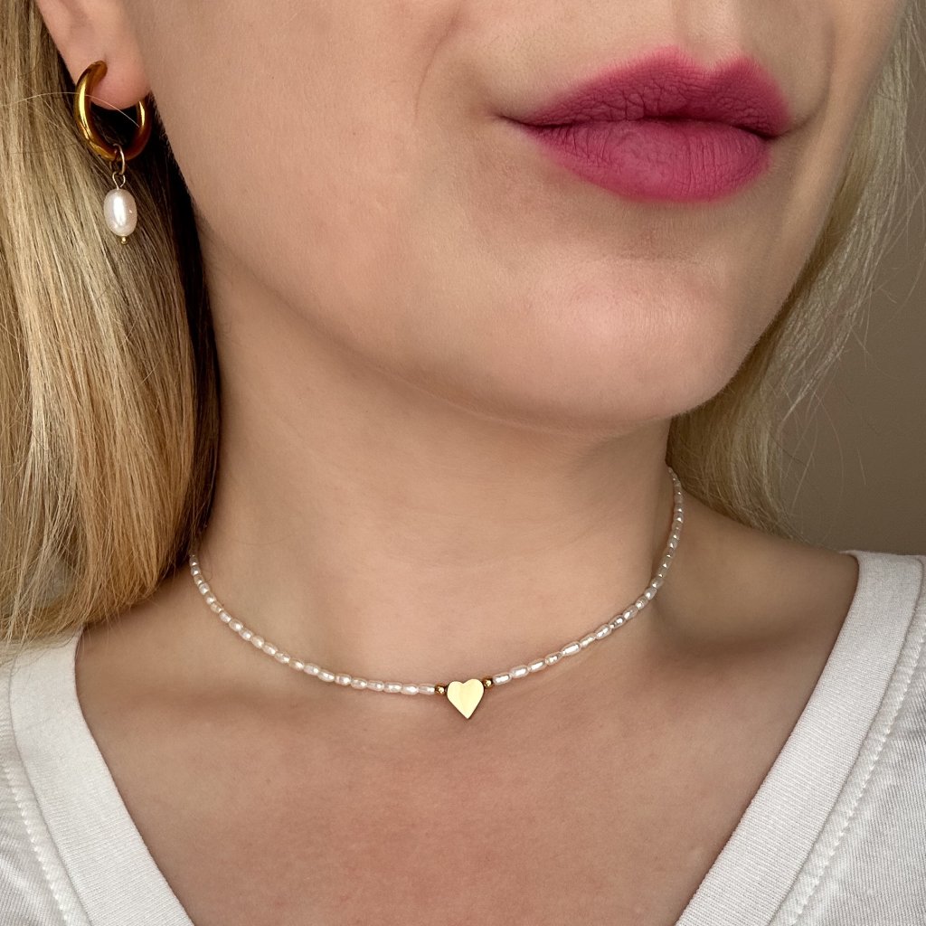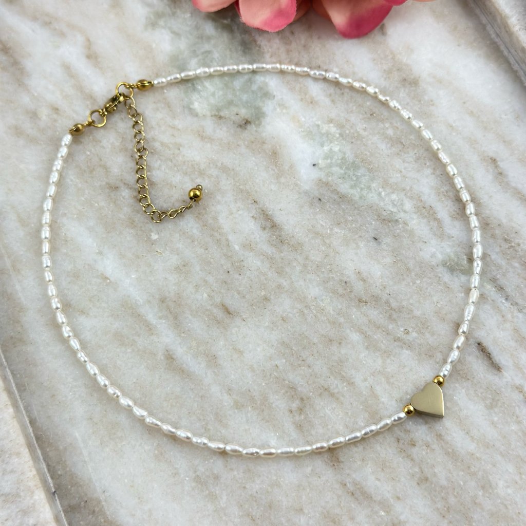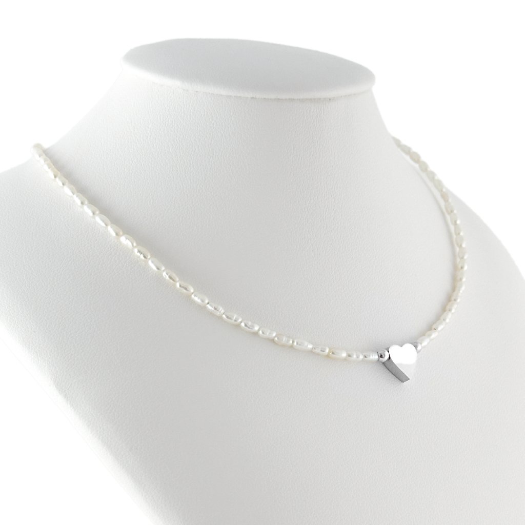 Náhrdelník z malých říčních perel. Perlový náhrdelník je vyroben z pravých sladkovodních rýžových perel a doplněn o maličké srdíčko z chirurgické oceli. Díky prodlužovacímu řetízku se náhrdelník z malých říčních perel snadno přizpůsobí Vašim potřebám, a pokud si přejete něco navíc, délku Vám upravím přesně na míru. Komponenty jsou vyrobeny z hypoalergenní chirurgické oceli, která je vysoce odolná a šetrná k citlivé pokožce.