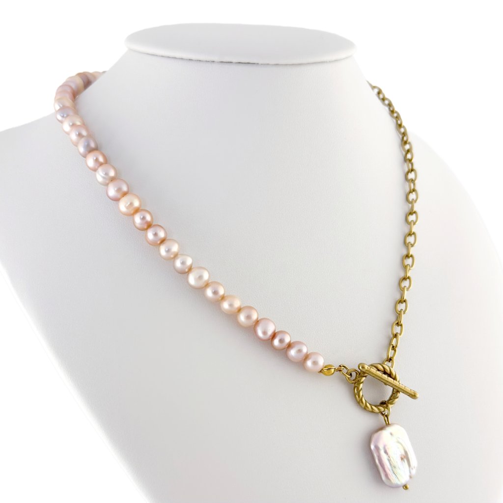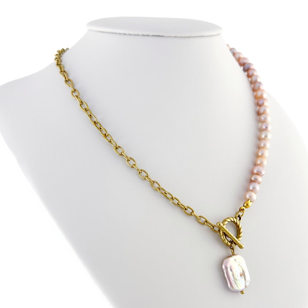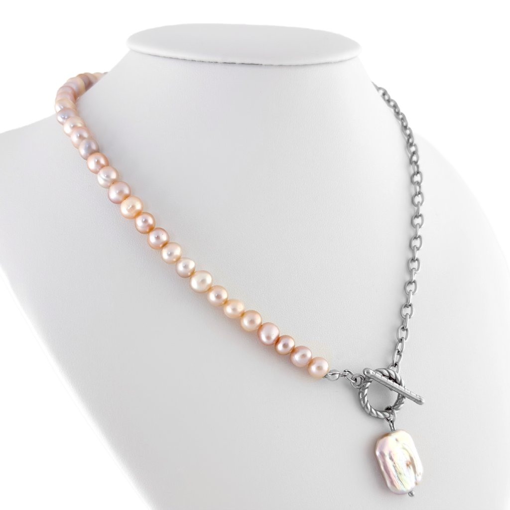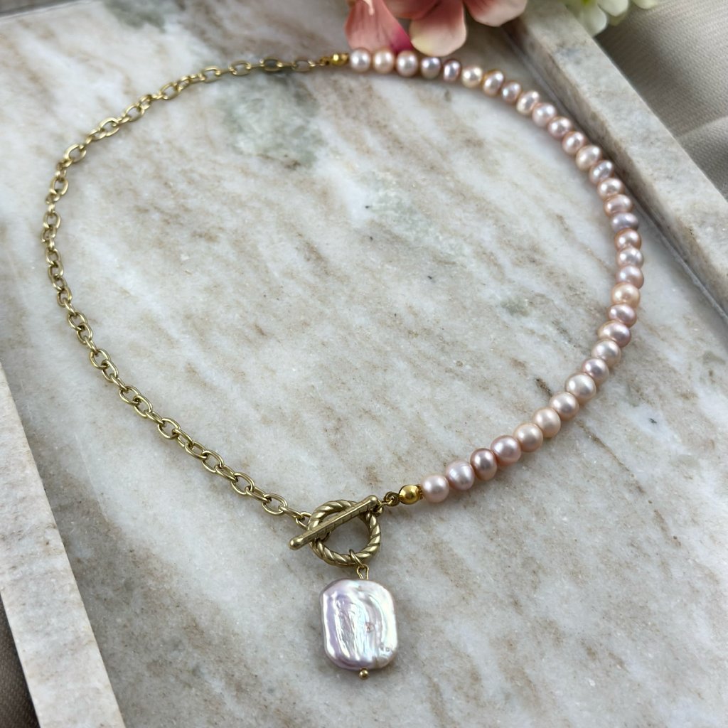 Náhrdelník z pravých růžových perel. Aurina je jemný, ale výrazný náhrdelník. Tento perlový náhrdelník je kombinací růžových říčních perel a elegantního řetízku, které se střídají v dokonale vyvážené kompozici. Dominantním prvkem je americké zapínání , na kterém je zavěšena barokní sladkovodní perla – nepravidelná a přirozeně krásná, stejně jako sama příroda.