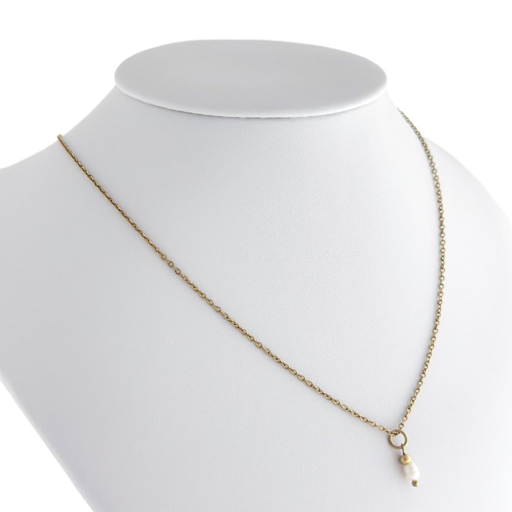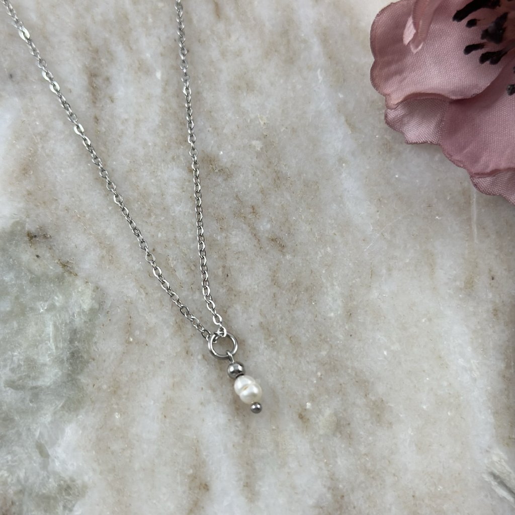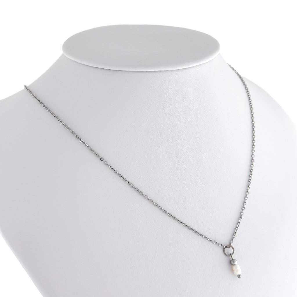 Minimalistický náhrdelník s říční perlou. Jemný řetízek s říční perlou je vyroben z chirurgické oceli, která zaručuje odolnost a stálost náramku. Díky svému decentnímu a nadčasovému provedení je náhrdelník ideální jak na běžné nošení, tak i na speciální příležitosti. Skvěle se kombinuje s jinými šperky.