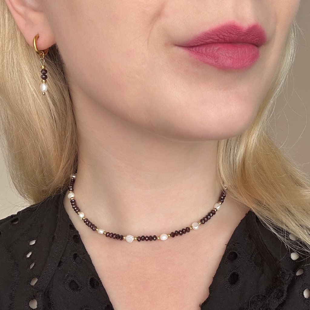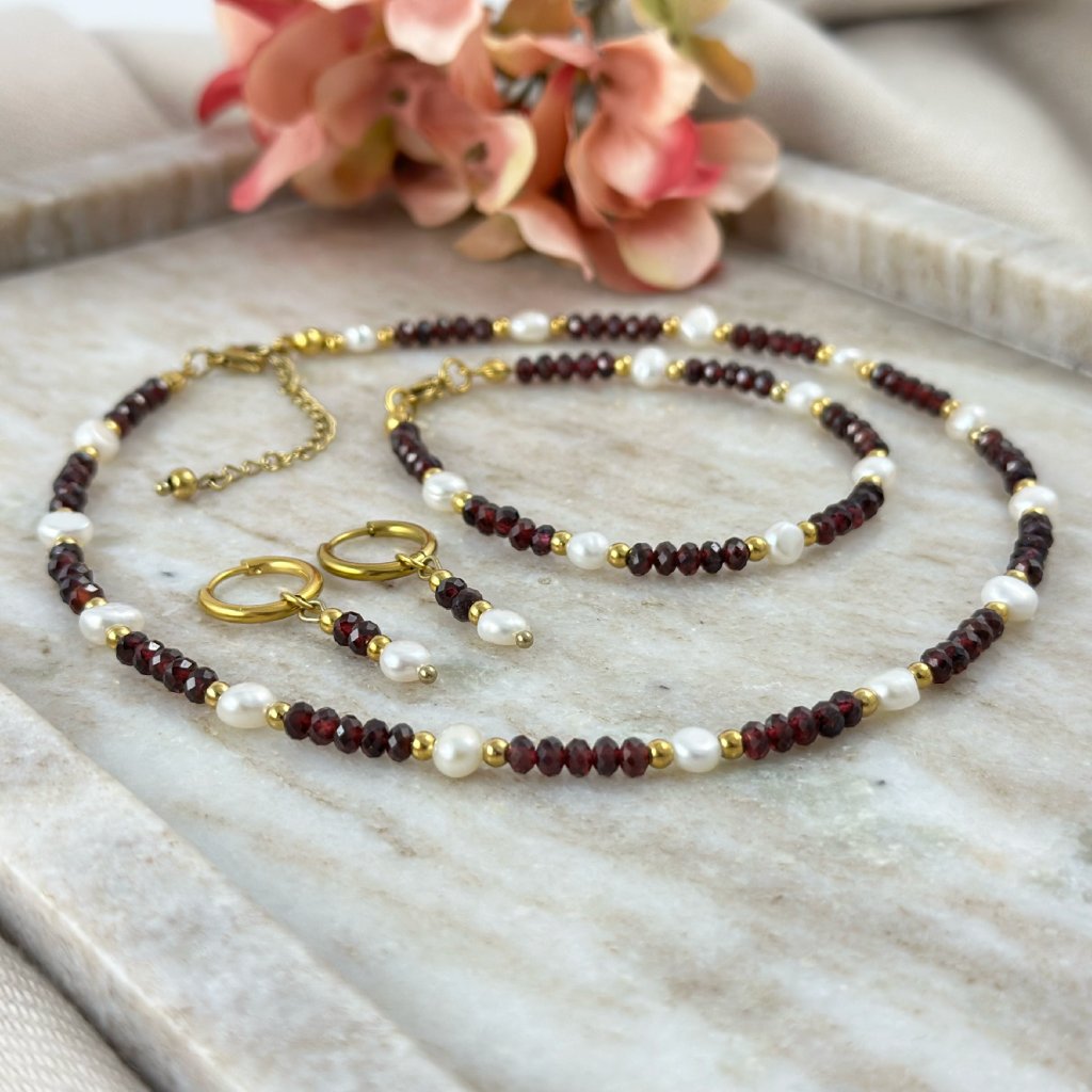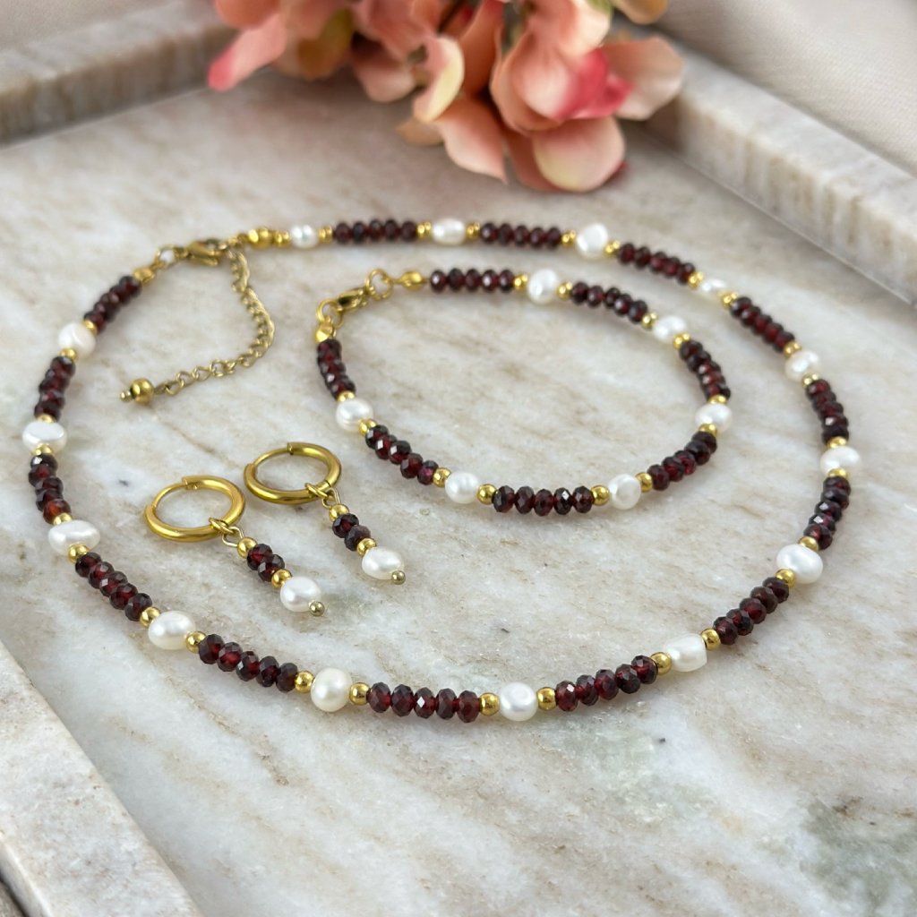 Souprava šperků s pravými perlami a granátem Rina