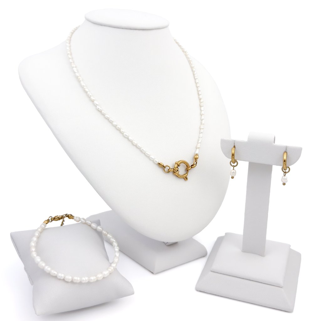 Tato souprava šperků je vyrobena z perel, které odpovídají stejně vysoké kvalitě, jakou mají naše certifikované náhrdelníky Českou gemologickou laboratoří. Jejich velikost a tvar se mohou mírně lišit v závislosti na variantě.