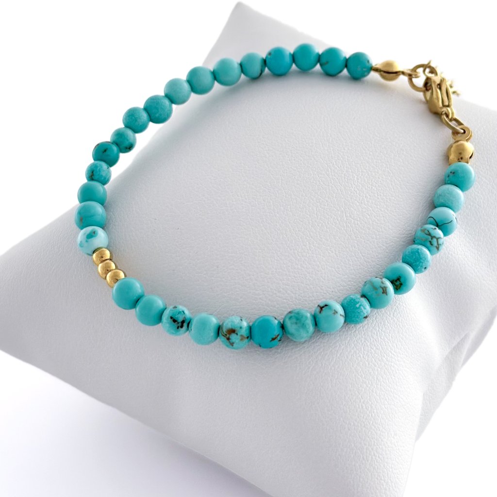 Rekonstruovaný tyrkys vzniká kombinací pravých kousků kamene s pojivem, díky čemuž je pevnější a cenově dostupnější, přitom si zachovává přirozenou krásu tyrkysu. Je odolný proti poškození a skvěle se hodí na každodenní nošení.