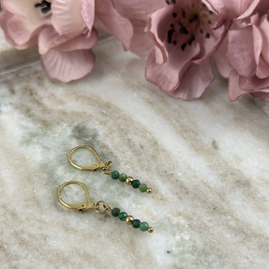 - Visací náušnice s přírodním smaragdem velikosti 3 mm.