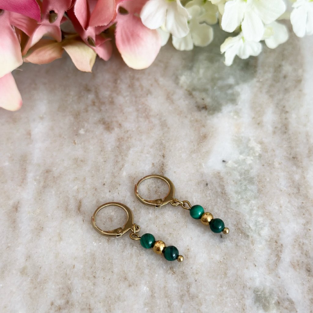 Visací náušnice s malachitem Nemeria. Zahalte se do jemného šepotu přírody s malachitovými náušnicemi Nemeria, které propojují sílu malachitu a ženskou eleganci. Tyto ručně vyráběné náušnice z malachitu vynikají svou smaragdově zelenou kresbou a elegantním pohybem, který podtrhne každý váš krok. Tyto zelené náušnice jsou ideálním doplňkem k náhrdelníku či náramku ze stejné kolekce – nebo jako samostatný šperk pro ženu, která miluje jedinečnost.