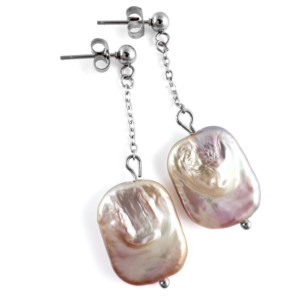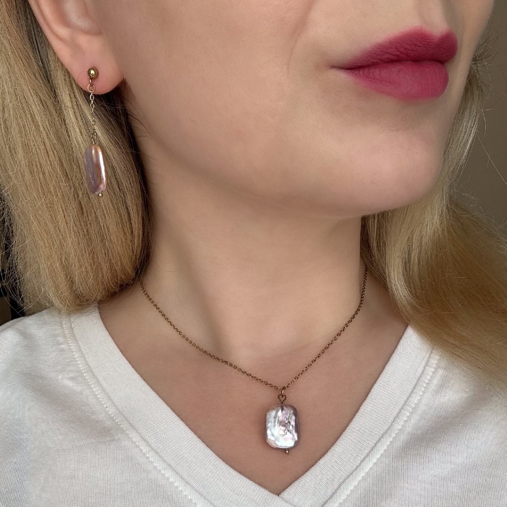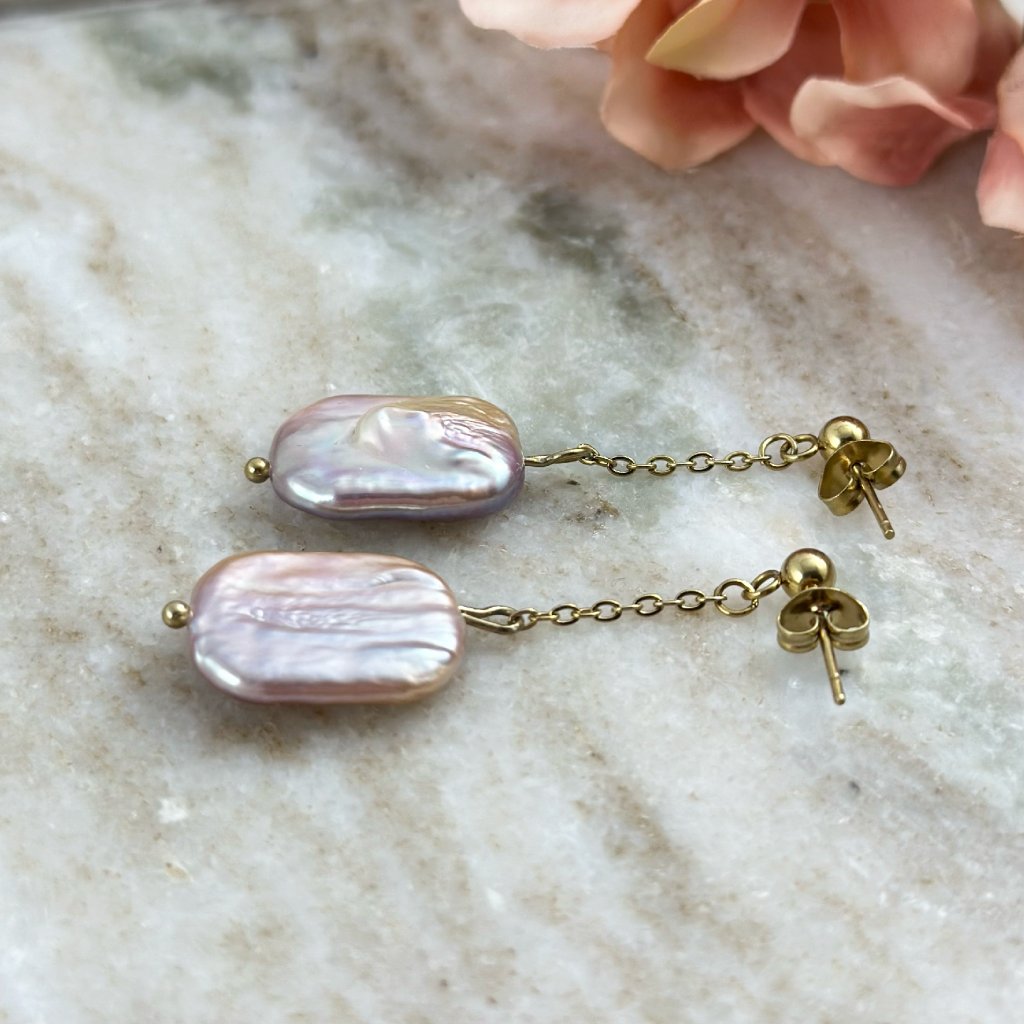 Visací náušnice s růžovou barokní perlou. V jednoduchosti je krása. Tyto visací náušnice s jednou růžovou barokní perlou osloví každou ženu, která hledá jemný, ale výrazný doplněk. Barokní perla s nepravidelným tvarem a jemným růžovým odstínem působí přirozeně a romanticky, zatímco decentní uchycení nechává vyniknout její přirozenou krásu.