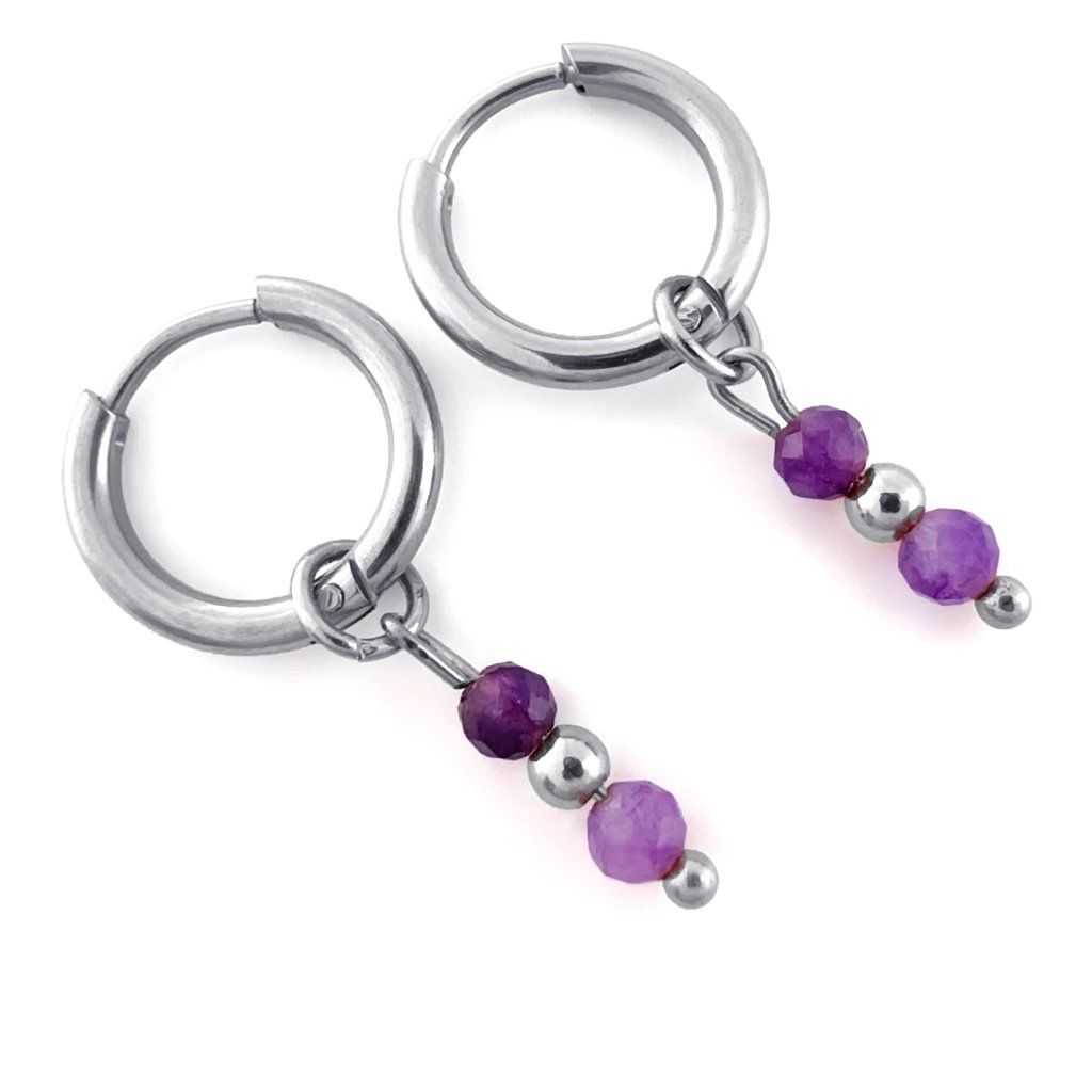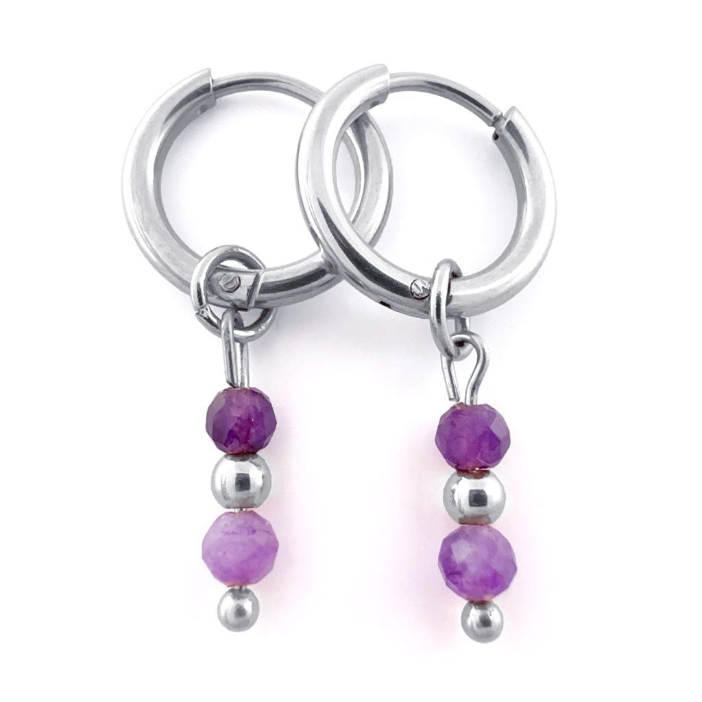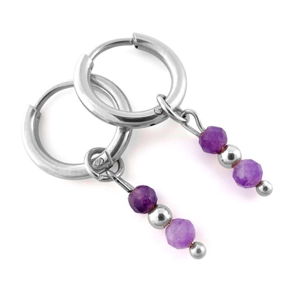 Kruhové ametystové náušnice Aurelia. Krásné, ručně vyráběné náušnice z přírodního ametystu, které dodají Vašemu outfitu jemný nádech elegance a mystiky. Každý kámen je originál – jedinečný jako Vy. Ametyst chrání před negativními vlivy, podporuje intuici a duchovní růst. Je ideální pro ty, kteří hledají vnitřní sílu, harmonii a duchovní očistu. Tip na dárek pro ženy, které milují přírodu, energii kamenů a ruční práci.