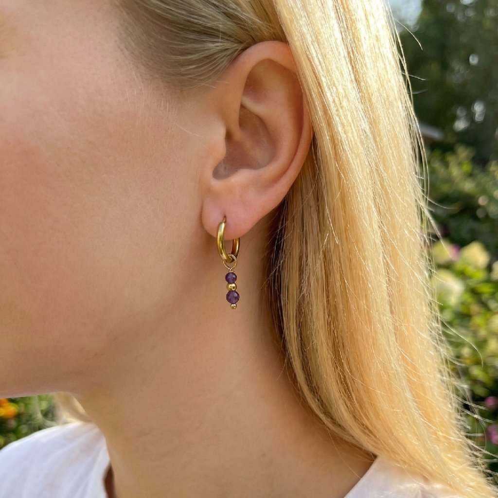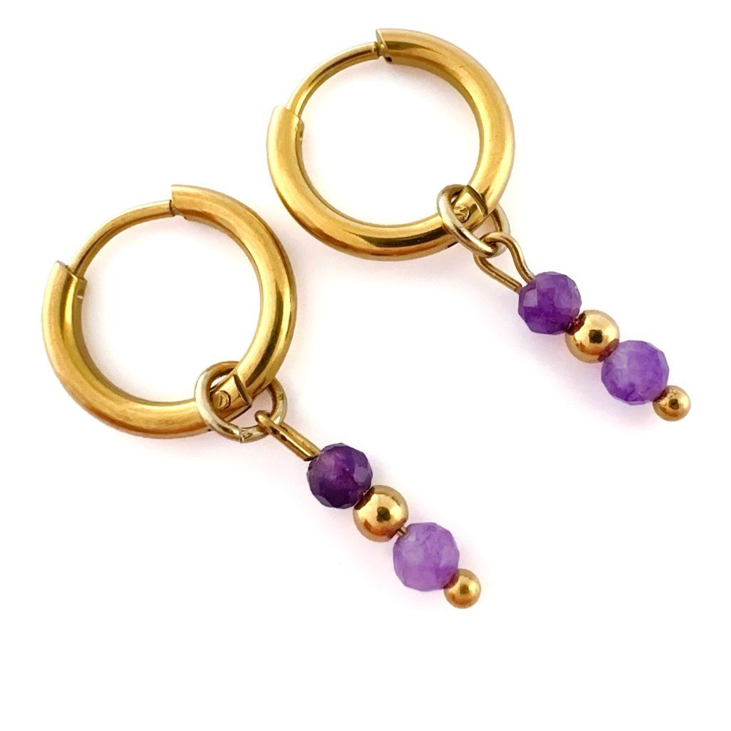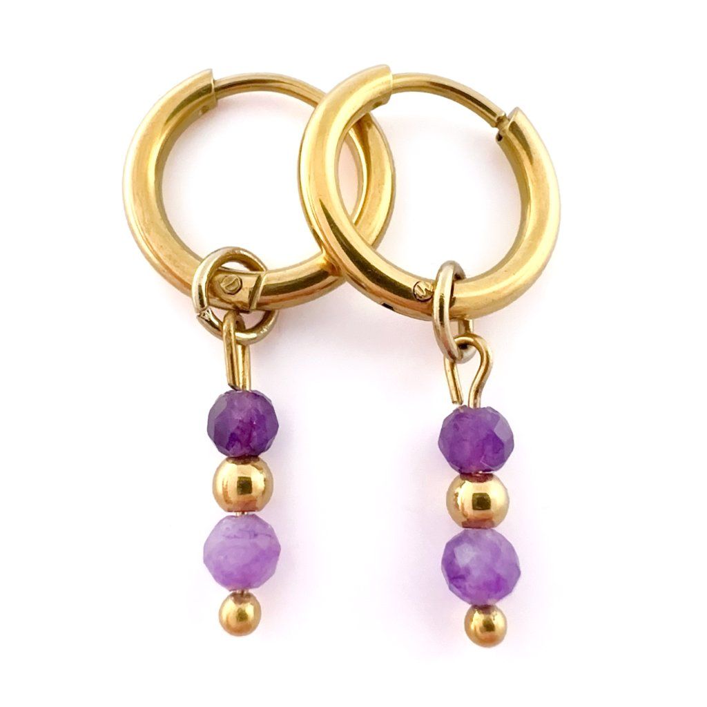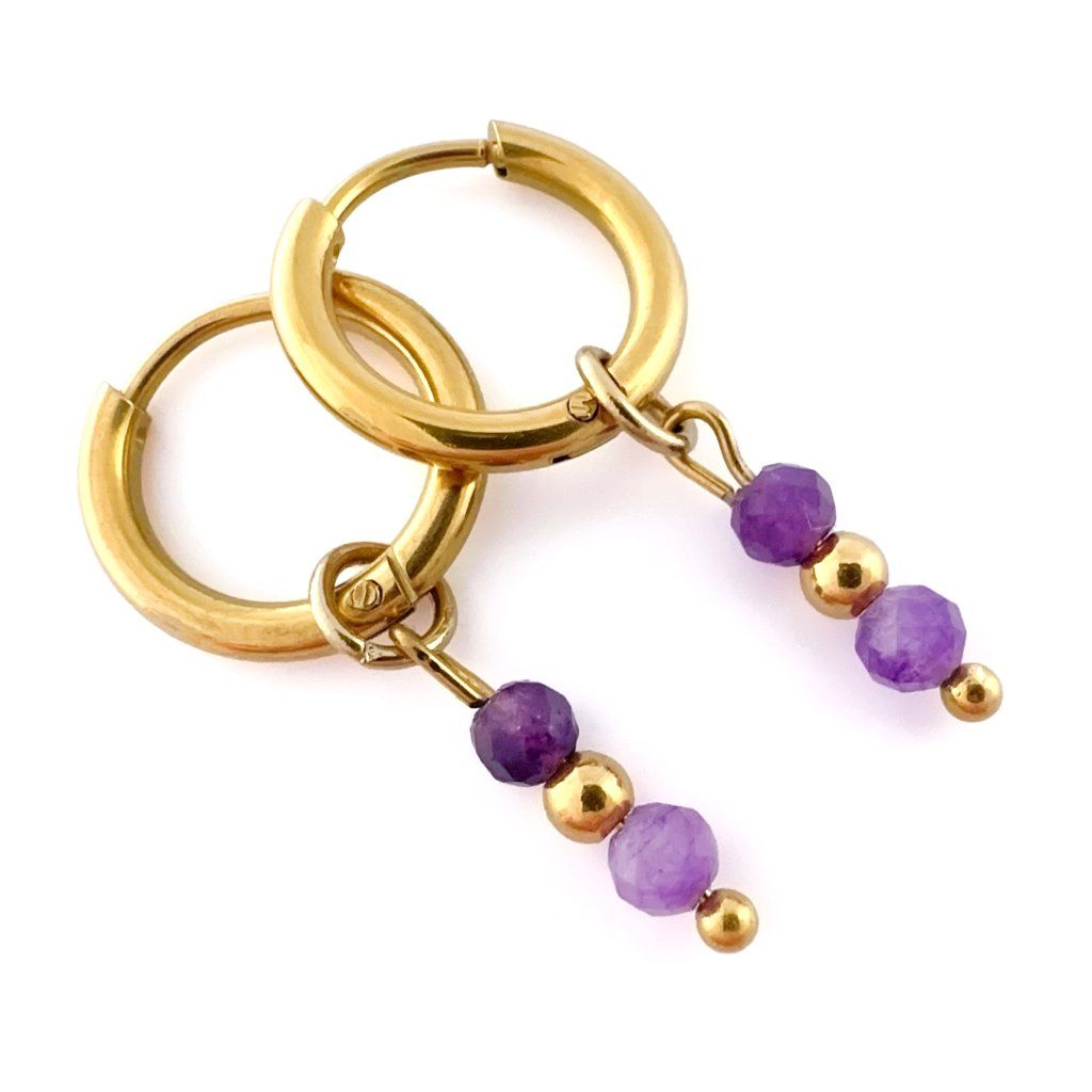Kruhové ametystové náušnice Aurelia. Krásné, ručně vyráběné náušnice z přírodního ametystu, které dodají Vašemu outfitu jemný nádech elegance a mystiky. Každý kámen je originál – jedinečný jako Vy. Ametyst chrání před negativními vlivy, podporuje intuici a duchovní růst. Je ideální pro ty, kteří hledají vnitřní sílu, harmonii a duchovní očistu. Tip na dárek pro ženy, které milují přírodu, energii kamenů a ruční práci.