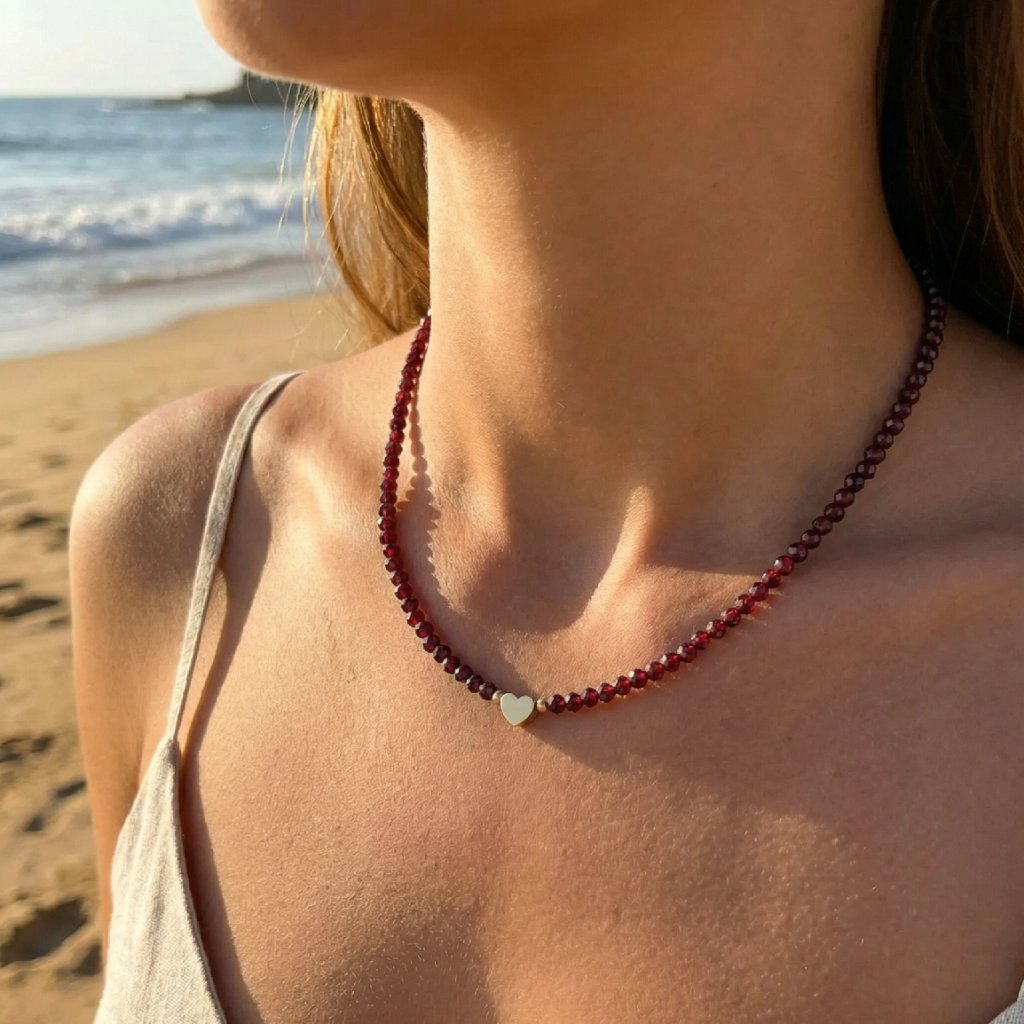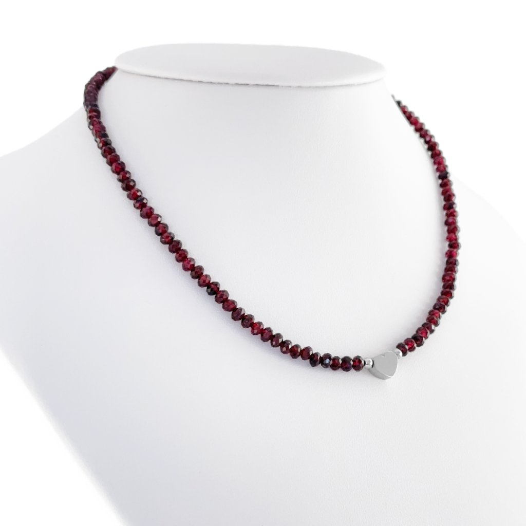 Granátový náhrdelník s malým srdíčkem. Granátový náhrdelník je vyroben z přírodního granátu a doplněn o maličké srdíčko z chirurgické oceli. Díky prodlužovacímu řetízku se náhrdelník z granátu snadno přizpůsobí Vašim potřebám, a pokud si přejete něco navíc, délku Vám upravím přesně na míru. Komponenty jsou vyrobeny z hypoalergenní chirurgické oceli, která je vysoce odolná a šetrná k citlivé pokožce.