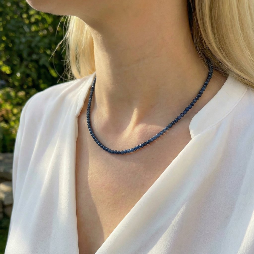 Ručně vyrobený náhrdelník se safírem, který v sobě spojuje hloubku noční oblohy, eleganci a poctivou řemeslnou práci. Každý kus vzniká pečlivě ručně, s důrazem na detail a jedinečnost – stejně jako žena, která jej bude nosit. Ručně vyrobený náhrdelník se safírem, který v sobě spojuje hloubku noční oblohy a eleganci. Každý kus vzniká pečlivě ručně, s důrazem na detail a jedinečnost – stejně jako žena, která jej bude nosit. Minimalistické zpracování umožňuje, aby vynikla přirozená krása kamene. Náhrdelník se safírem se hodí pro každodenní nošení i slavnostní příležitosti a snadno se kombinuje s dalšími šperky.
