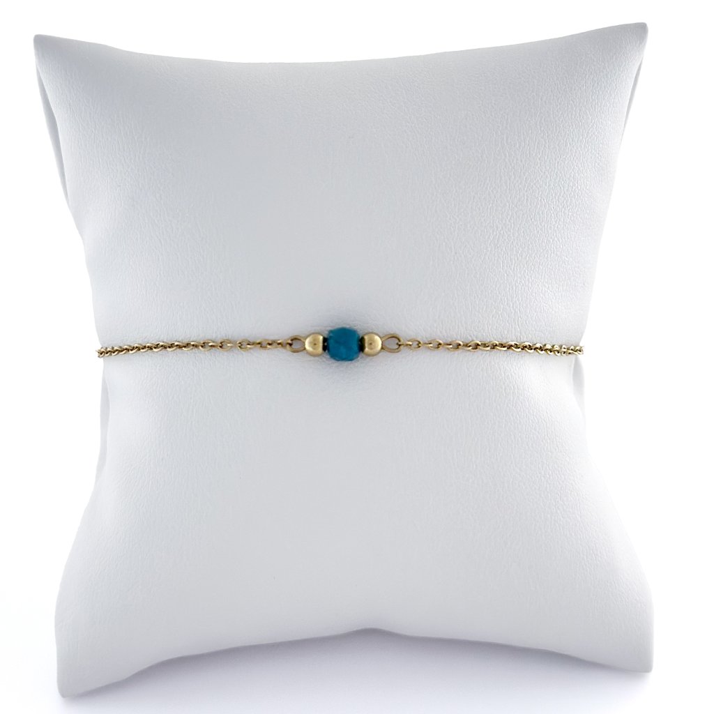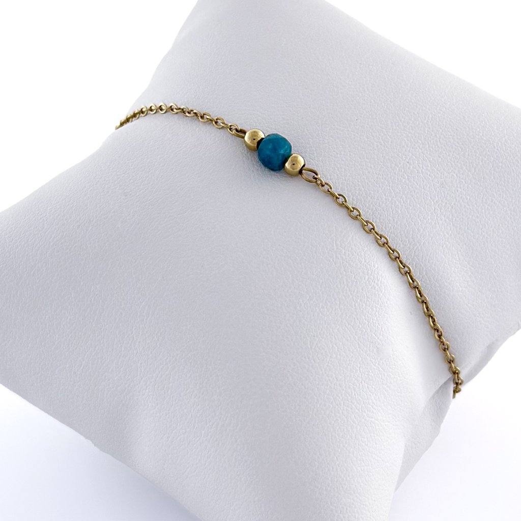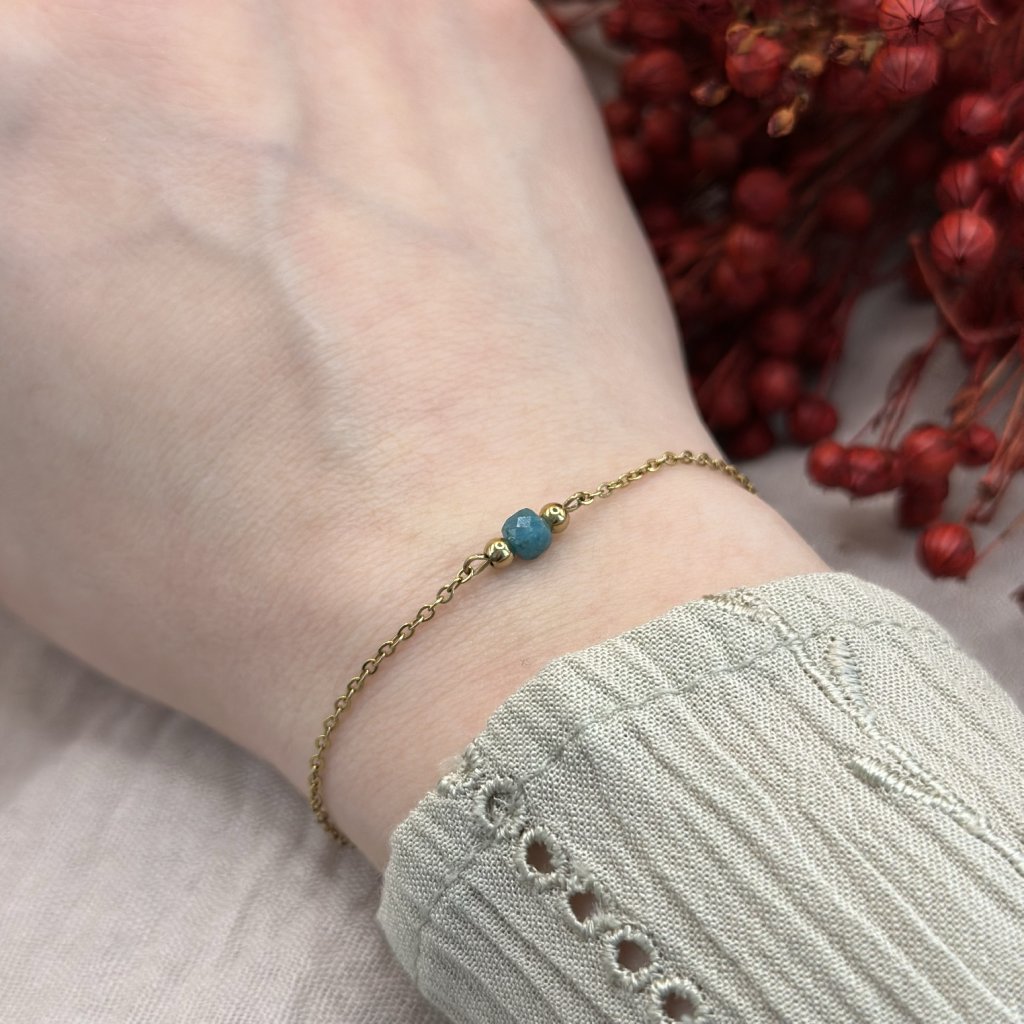 Minimalistický náramek s přírodním apatitem. Jemný řetízek je vyroben z chirurgické oceli, která zaručuje odolnost a stálost náramku. Apatit nám může pomoci zlepšit stav metabolismu. Také pomáhá zvýšit motivaci. Díky svému decentnímu a nadčasovému provedení je náramek ideální jak na běžné nošení, tak i na speciální příležitosti. Skvěle se kombinuje s jinými šperky. Dostupný ve zlatém a stříbrném odstínu. Délku náramku Vám upravím přesně na míru.