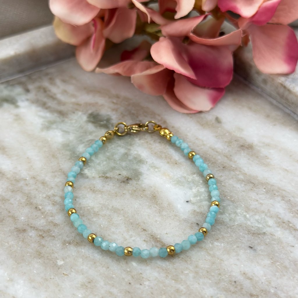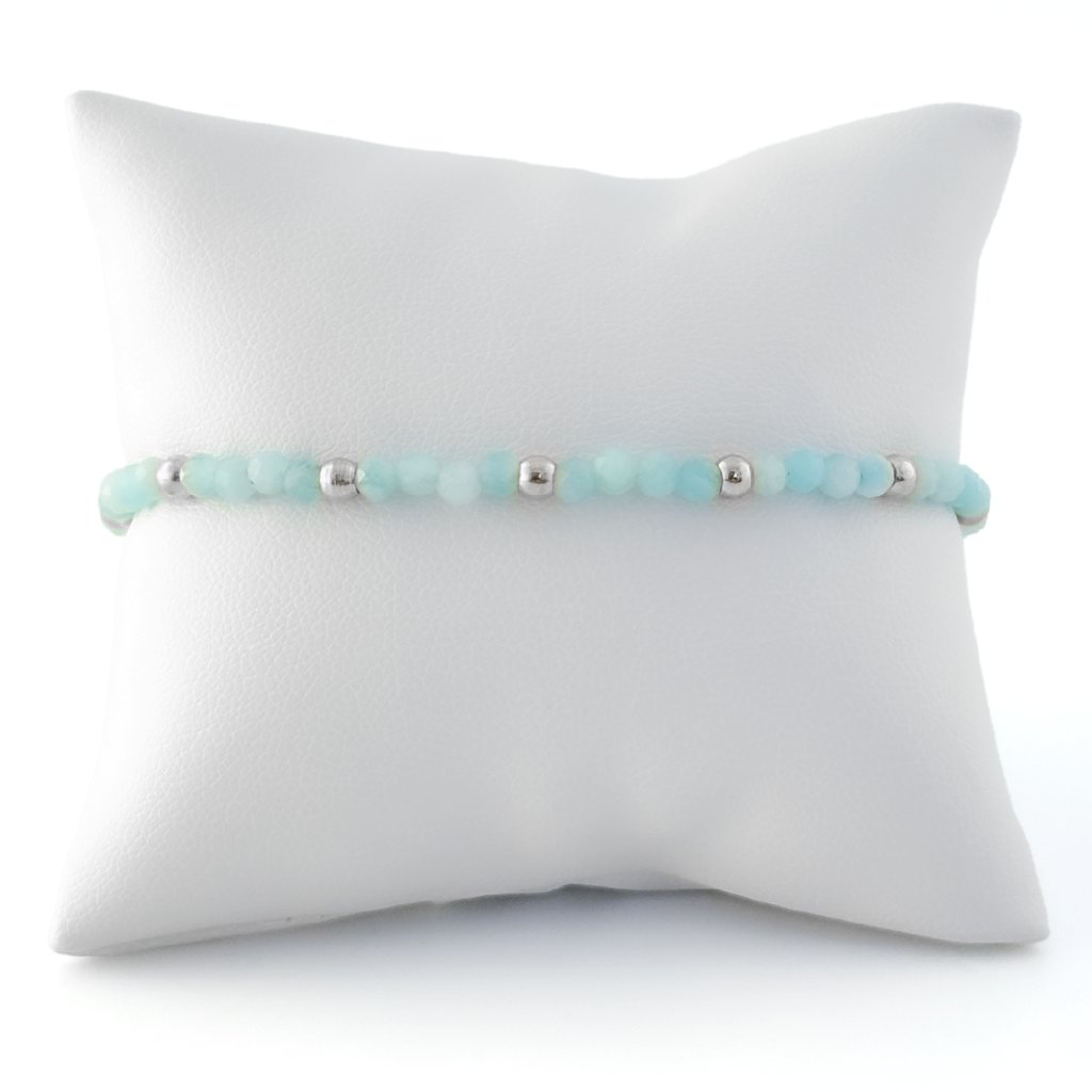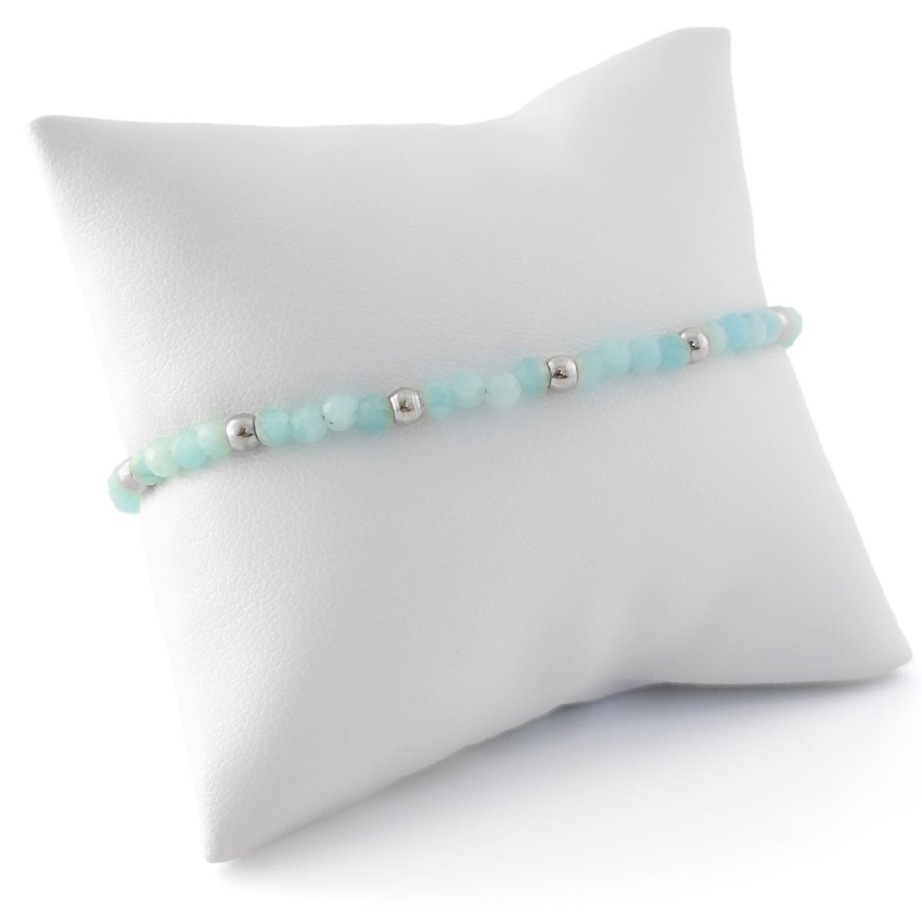 Náramek s přírodním amazonitem. Náramek Rossano je zdoben korálky z přírodního amazonitu. Amazonit je mimořádně uklidňující kámen. Podporuje vitalitu a pomáhá zklidnit tělo i mysl. Korálky a ostatní komponenty jsou z odolné chirurgické oceli, která je voděodolná a hypoalergenní. Náramek s amazonitem Rossano vyrábím ve stříbrném i zlatém odstínu. Možné zakoupit i ve výhodném setu s náhrdelníkem a náušnicemi.