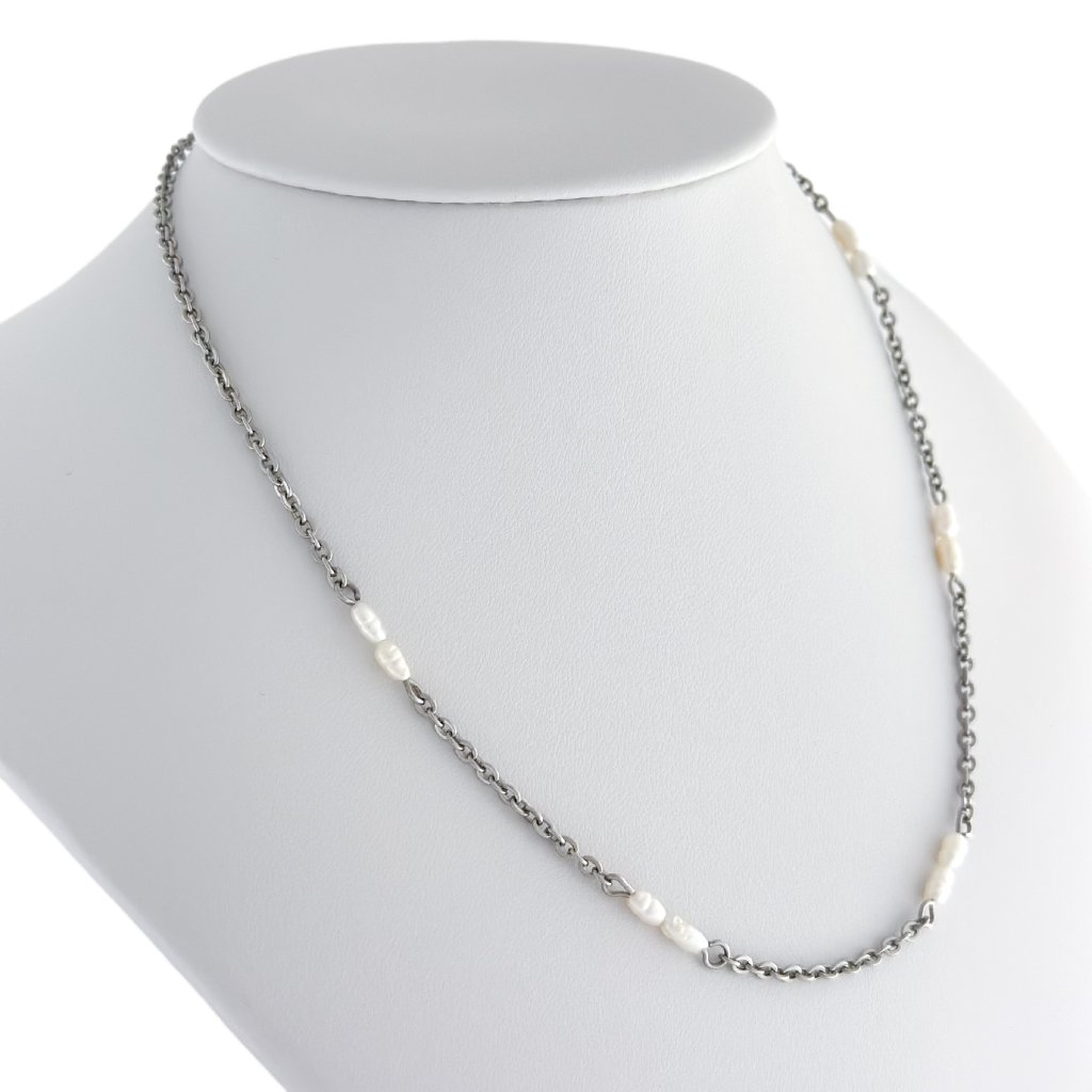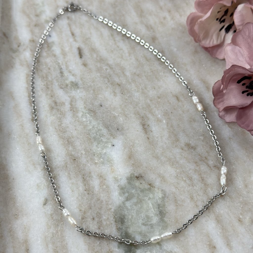 Perlový náhrdelník Enna je zdoben jemnými říčními perličkami, které dodávají tomuto šperku elegantní a nadčasový vzhled. Je perfektní pro vrstvení s dalšími náhrdelníky či řetízky, ale vypadá nádherně i samostatně. Tento náhrdelník z pravých říčních perel je připomínkou, že v jednoduchosti se skrývá opravdová krása.