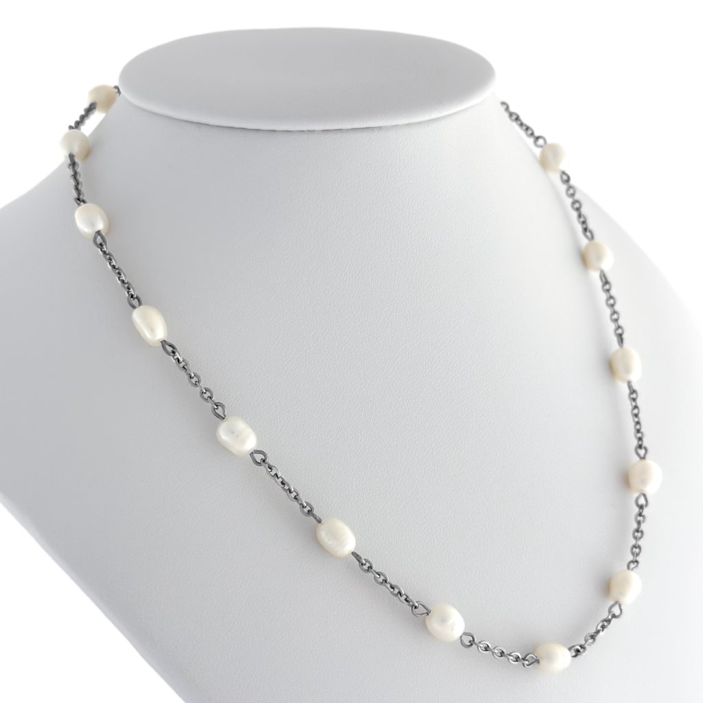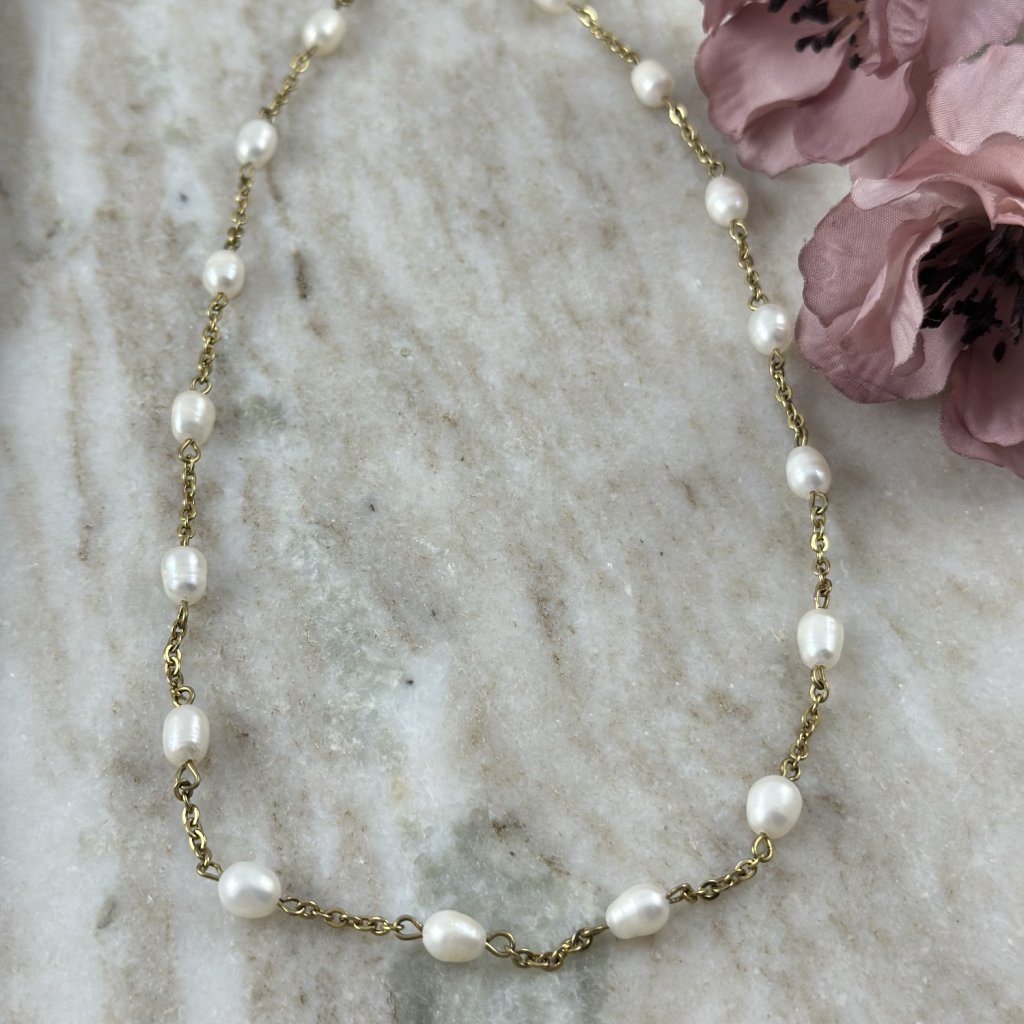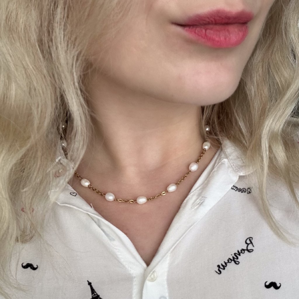Náhrdelník s říčními perlami. Ručně vyrobený řetízek s pravými perlami Lisa je zdoben pravými sladkovodními perlami, které mu dodávají jedinečný půvab. Řetízek je vyroben z odolné chirurgické oceli, která je hypoalergenní, nečerná a perfektně drží svůj lesk. Lisa je náhrdelník, který se hodí pro všechny, jež chtějí nosit šperk s osobitým kouzlem. Jeho nadčasový design vynikne při každé příležitosti a stane se vaším oblíbeným doplňkem.