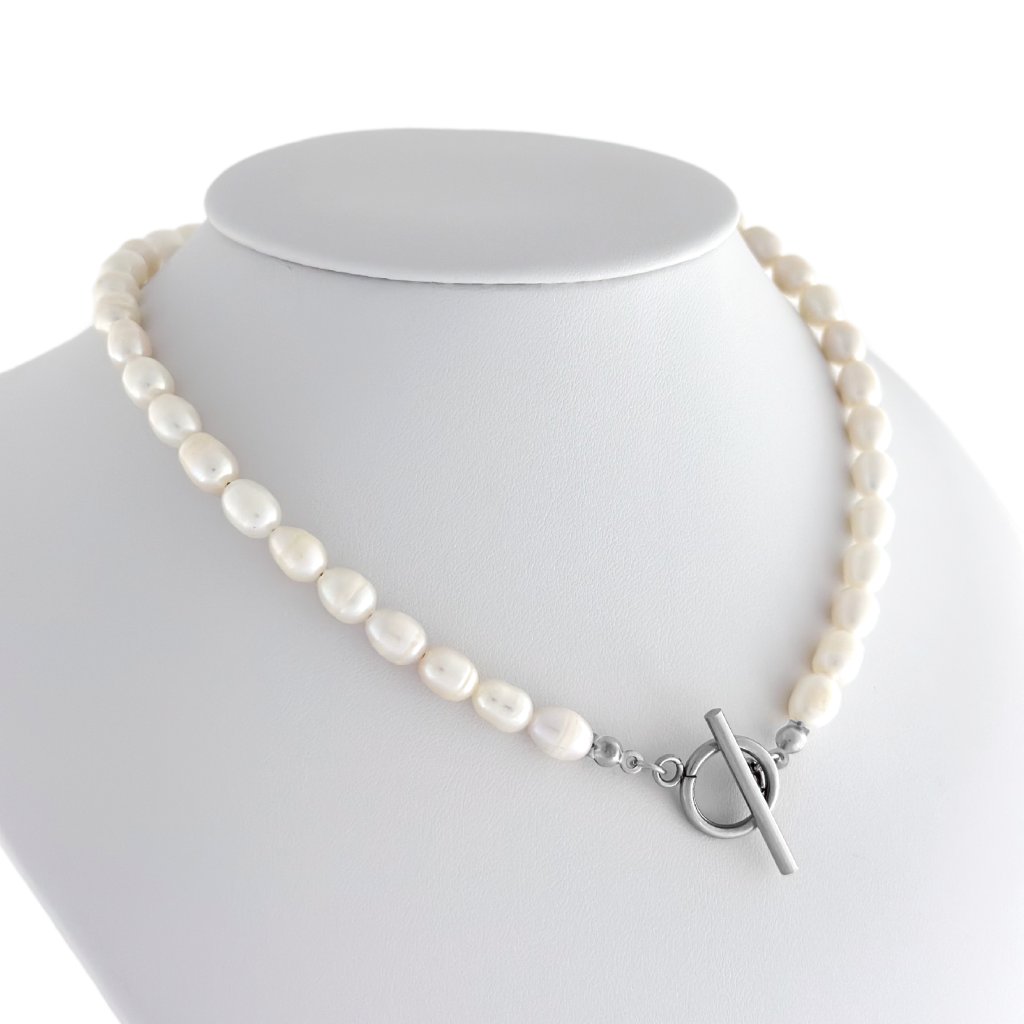Náhrdelník z pravých říčních perel Vás okouzlí svým čistým a nadčasovým vzhledem. Perlový náhrdelník je zdoben luxusními perlami vysoké kvality o velikosti 5-6 mm, které dodají Vašemu outfitu nádech elegance. Náhrdelník se skvěle hodí jak pro slavnostní příležitosti, tak pro doplnění jednoduchého každodenního stylu. Náhrdelník Nina zdobí také moderní americké zapínání. Komponenty jsou z vysoce odolné chirurgické oceli, která je hypoalergenní a nečerná ani po kontaktu s vodou.