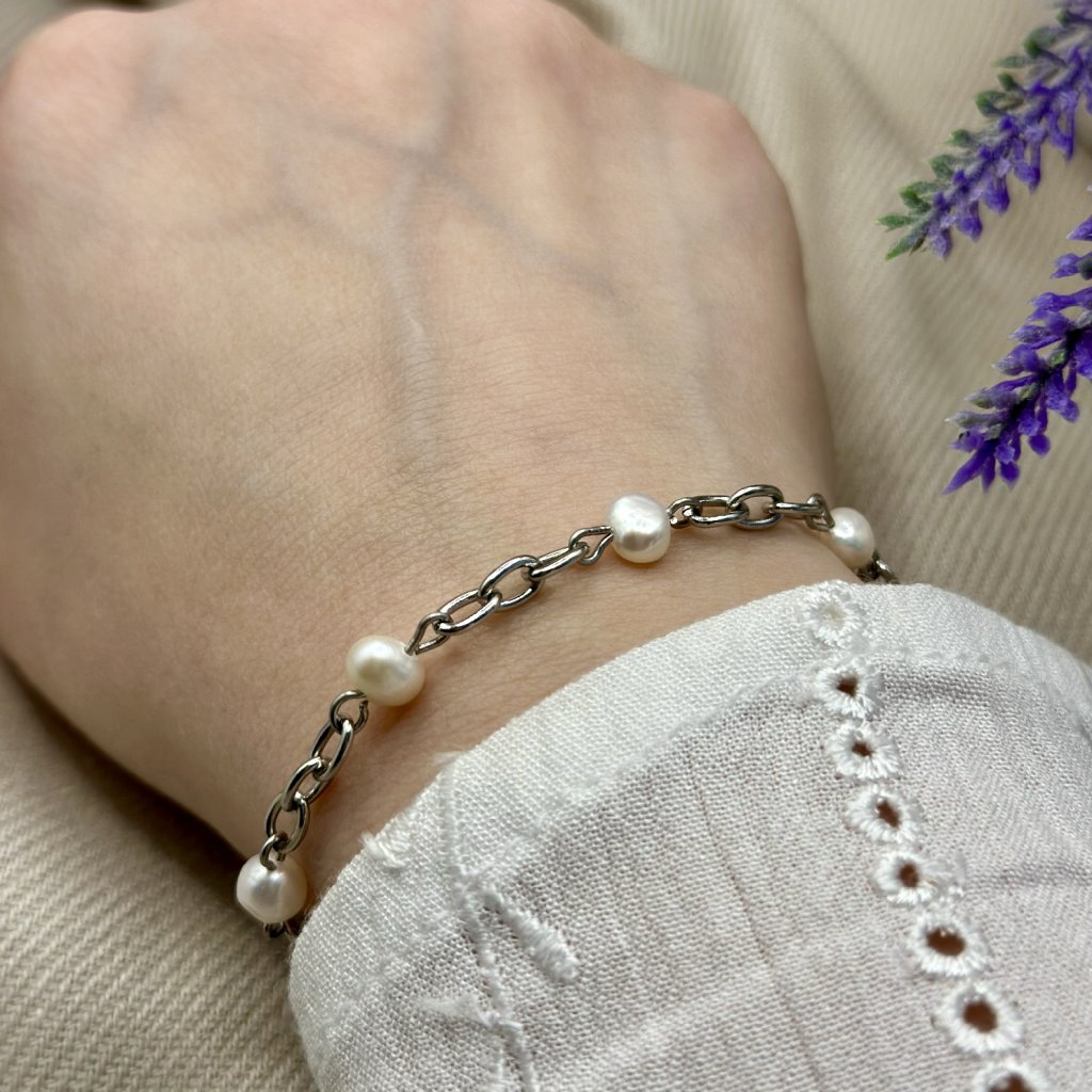 Perlový náramek Napoli zdobí sedm říčních perel. Náramek z pravých perel je vyroben z vysoce odolné chirurgické oceli. Jemné říční perly dodávají náramku nádech luxusu. Ideální doplněk pro každou příležitost, který zaujme svou jedinečností. Náramek z říčních perel Napoli Vám upravím na míru.