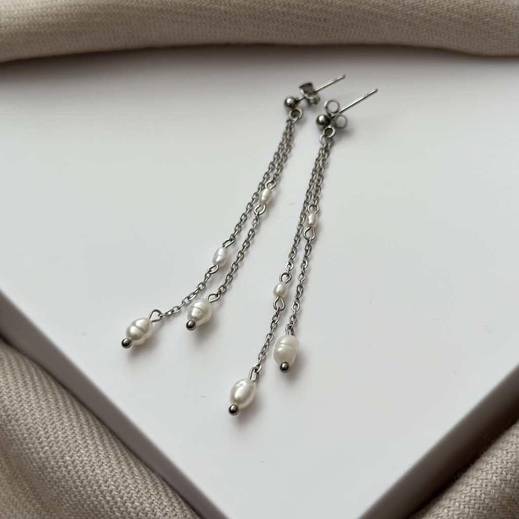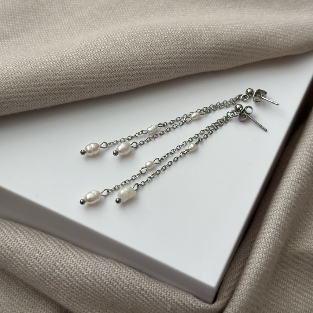 Nádherné visací perlové náušnice Afrodita zdobí říční perly vysoké kvality. Tyto skvostné perlové náušnice jsou vhodné ke každodennímu nošení, ale hodí se i k večerním šatům. Náušnice se skvěle hodí na ples, svatbu nebo jinou společenskou událost. V případě zájmu Vám upravím délku náušnice Afrodita na míru. Dostupné i ve zlaté variantě.